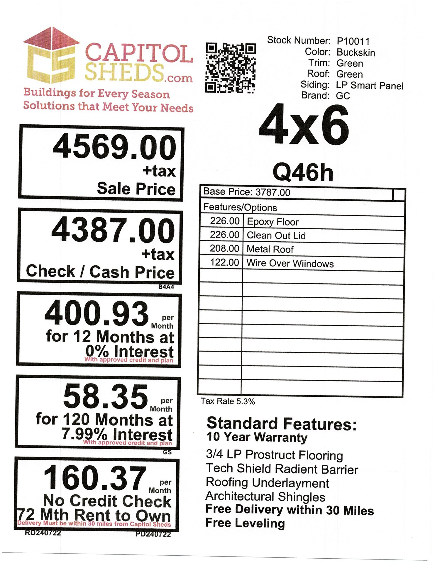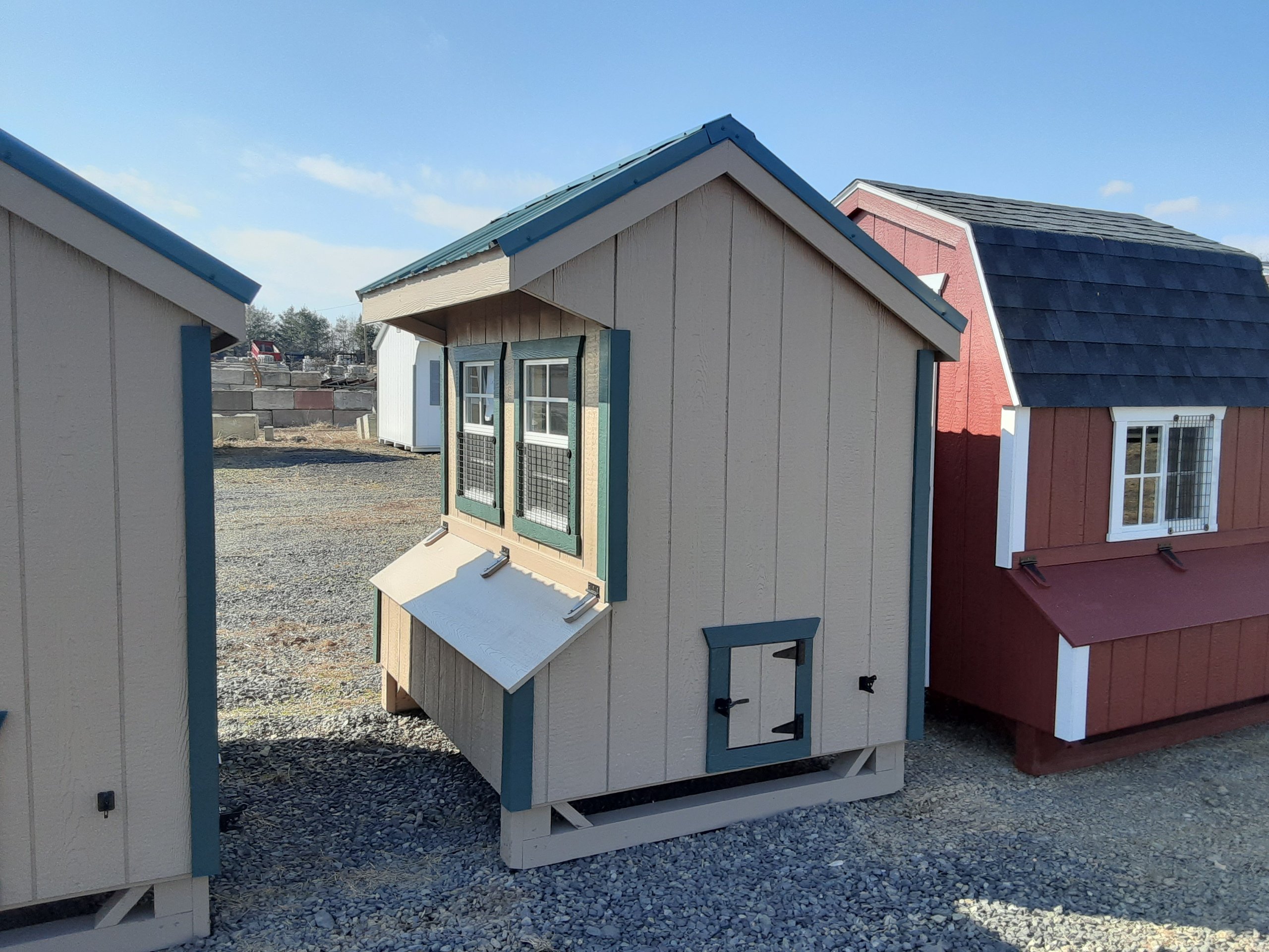 Welcome to the Quaker Coop, the charming Amish-built haven for your beloved chickens. This 4×6 coop features Buckskin Smart Panel and Green Trim, accentuated by a Green Metal roof. Sturdy 2×4 framing and LP Prostruct Flooring ensure a cozy and durable space. 1 windows allow ample natural light, for care. Experience exceptional upgrades, including Epoxy floor, Pamper your feathered friends with this functional and stylish Tractor Coop. Limited stock available, so seize this opportunity to provide your chickens with their dream home.