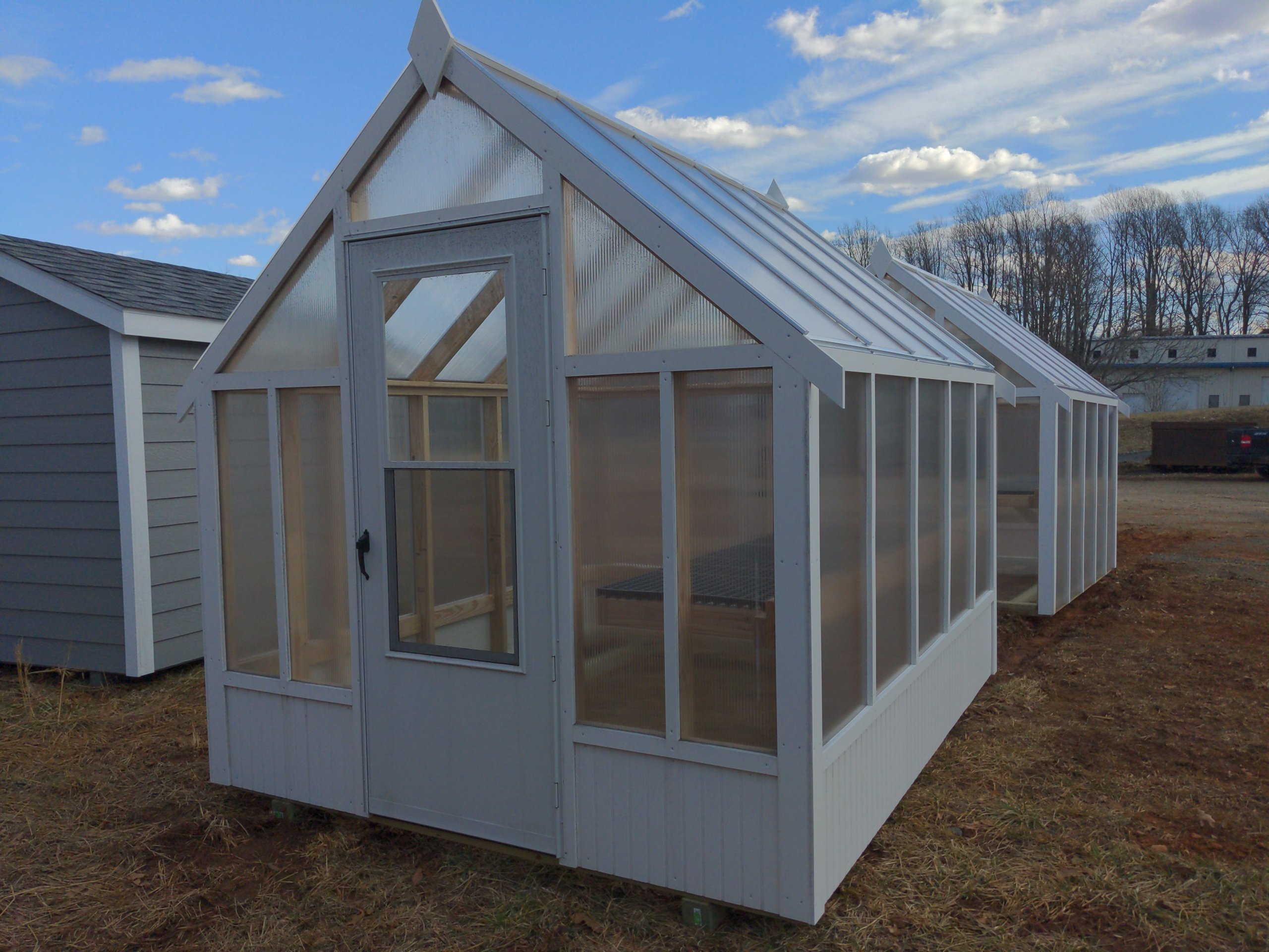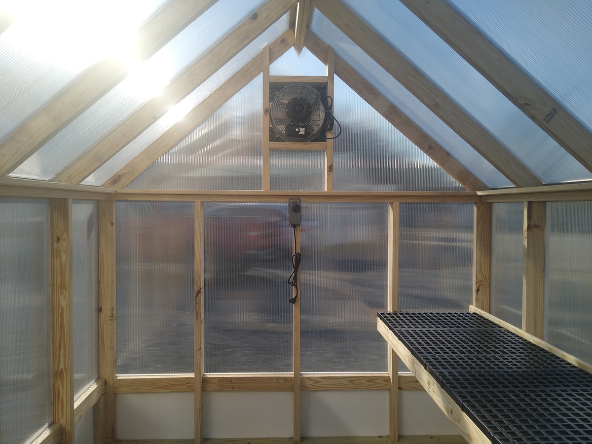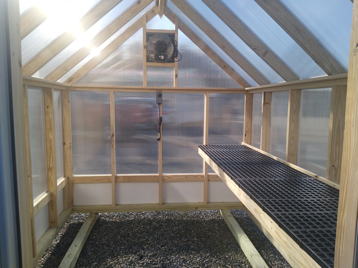Building Type: Elite Greenhouse Siding: Twin wall Polycarbonate Roofing: Twin wall Polycarbonate Floor: No Floor Framing: Pressure Treated 2×4’s 24 inches on center Exterior Trim: White Azek PVC Board Included Addons: Temperature Controlled Exhaust Fan 2 ft x 10ft Potting Shelf