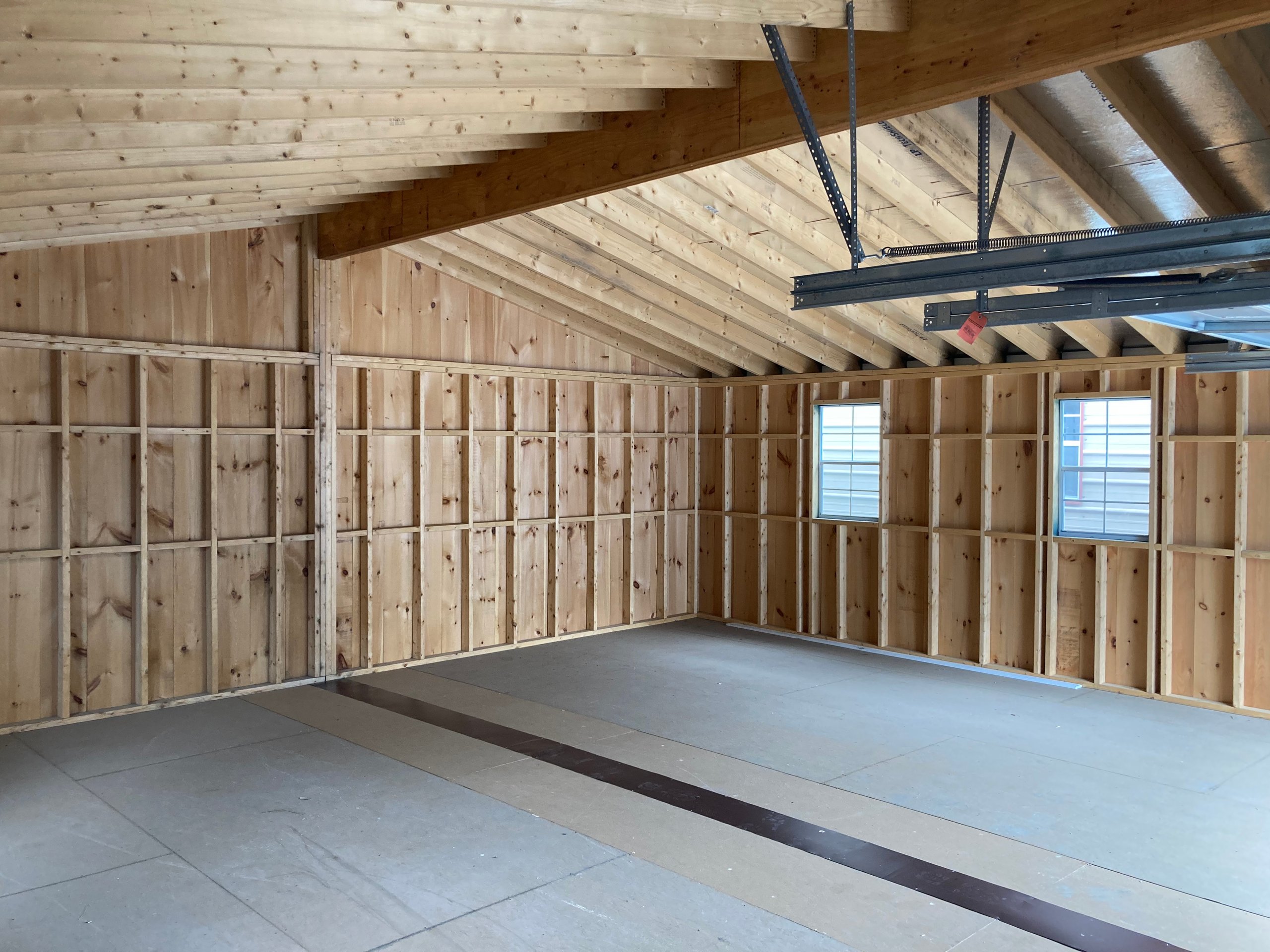With 4 windows and 2 garage doors, this double garage floods with natural light and offers ample space for vehicles, storage, or workshop needs. Sturdy 2×4 wall and roof framing, along with LP Tech Shield roof sheeting, ensure longevity. Inside, you’ll find LP Prostruct Flooring and pressure-treated 2×4 floor joists for added strength.