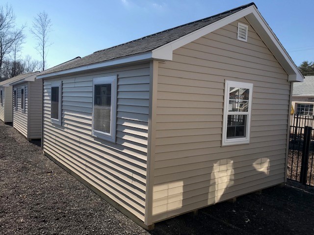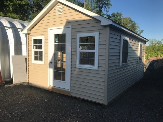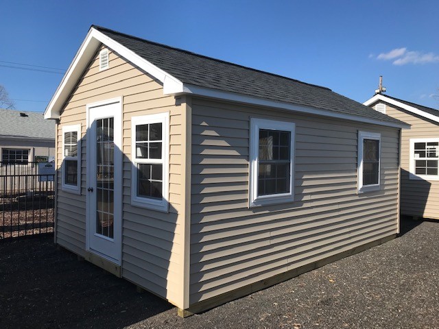 Introducing the Colonial A Frame storage shed, an Amish-built beauty that offers ample space with its 12×18 size and versatile design. The Vinyl siding in Tan adds a touch of elegance, complemented by the White trim and Black roof. With 7 windows and 1 single door, natural light fills the interior while providing easy access. The 2×4 stud wall and roof framing ensure sturdiness, while LP Tech Shield roof sheeting offers protection. Enjoy the Pressure Treated Floor, Shed Door Treadplate, House Door Upgrade, and the upgraded 24×36 Kinro Insulated Window. Complete with Felt/Tar Paper and Trim Around Windows for a polished look.