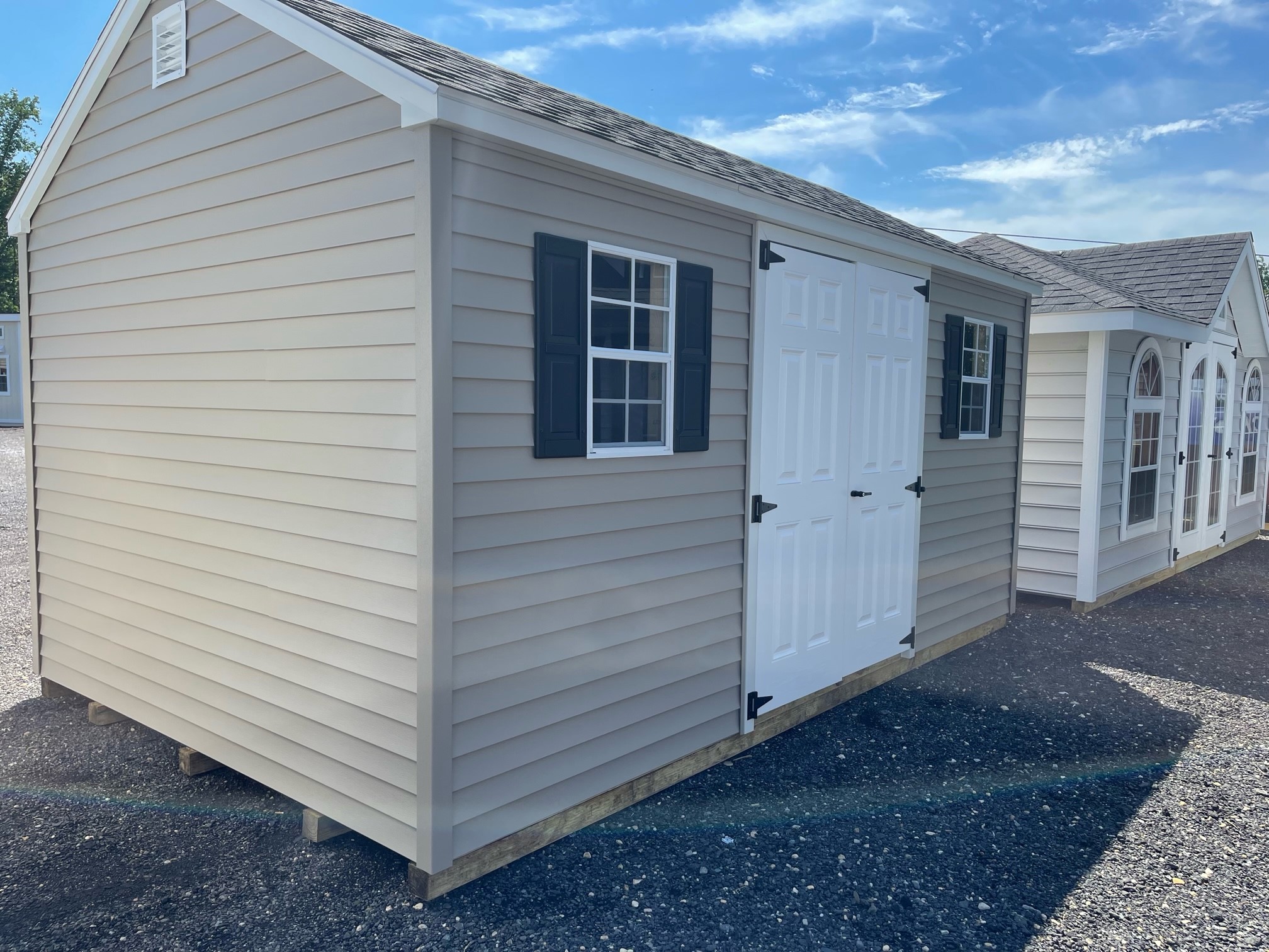 Introducing the A-Frame, a 10×16 storage solution meticulously crafted by Amish artisans. Enveloped in Clay Vinyl Traditional siding with White trim and a sleek Black roof, it marries durability with style. Boasting 2 windows, 1 door, and robust 2×4 framing, this shed provides ample storage. Elevate your space with a Pressure Treated Floor, Plywood Flooring, and LP Tech Shield roofing. Enhance functionality with a Shed Door Treadplate. With timeless design and quality craftsmanship, the A-Frame is your gateway to organized and stylish storage.