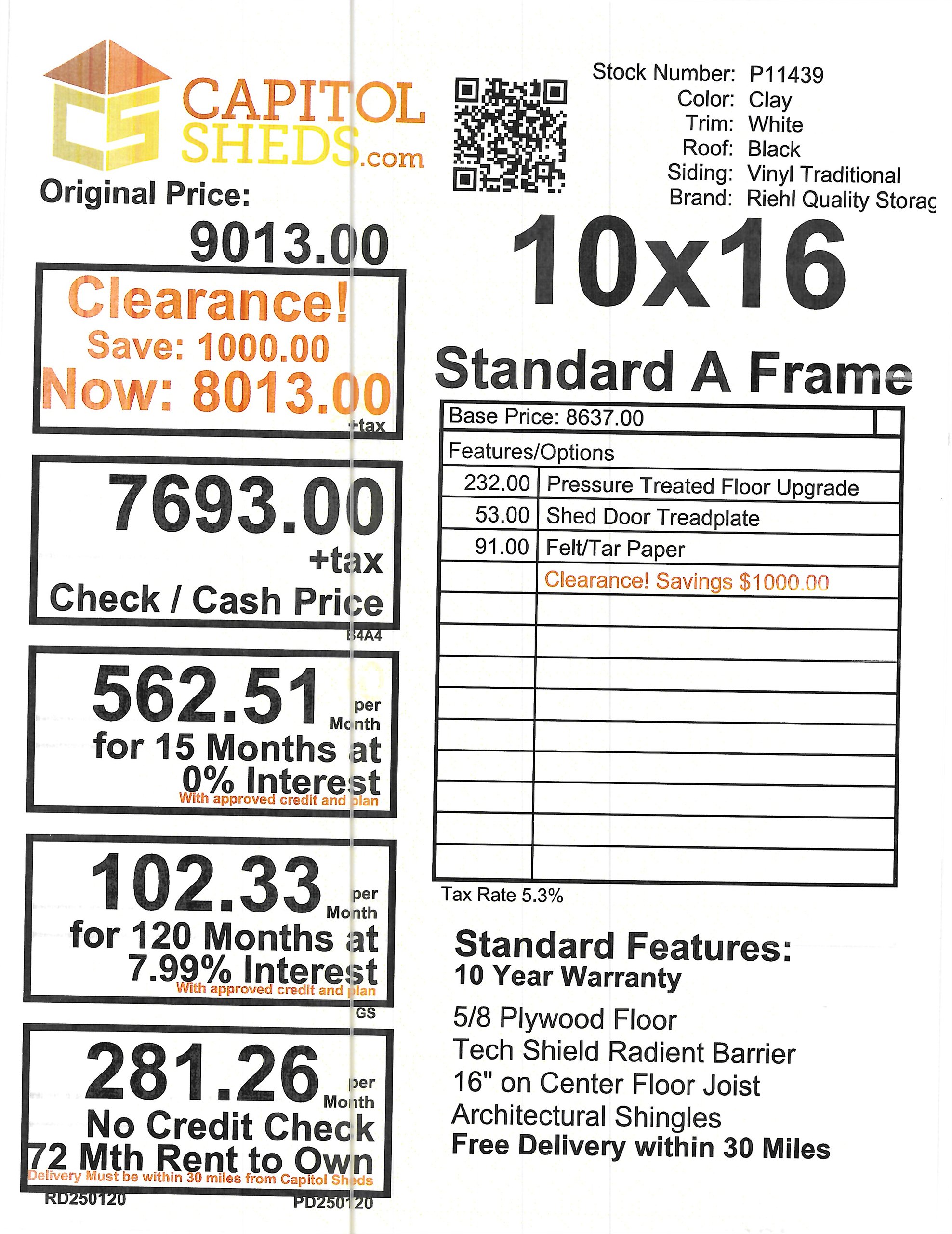 Reserve this building for a $500 deposit. Within 1 business day a rep will contact you to discuss delivery details and discounts you may qualify for such as cash/check, military/1st responder, etc.Location: Caroline County - Port Royal