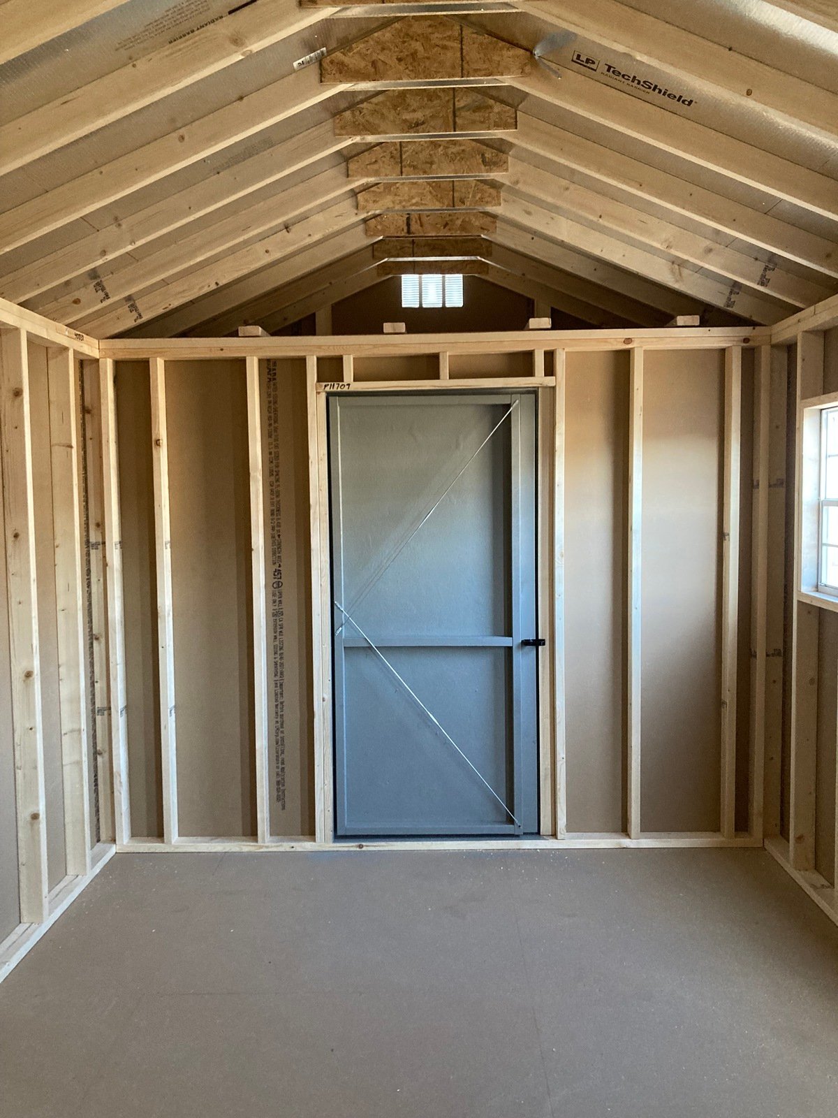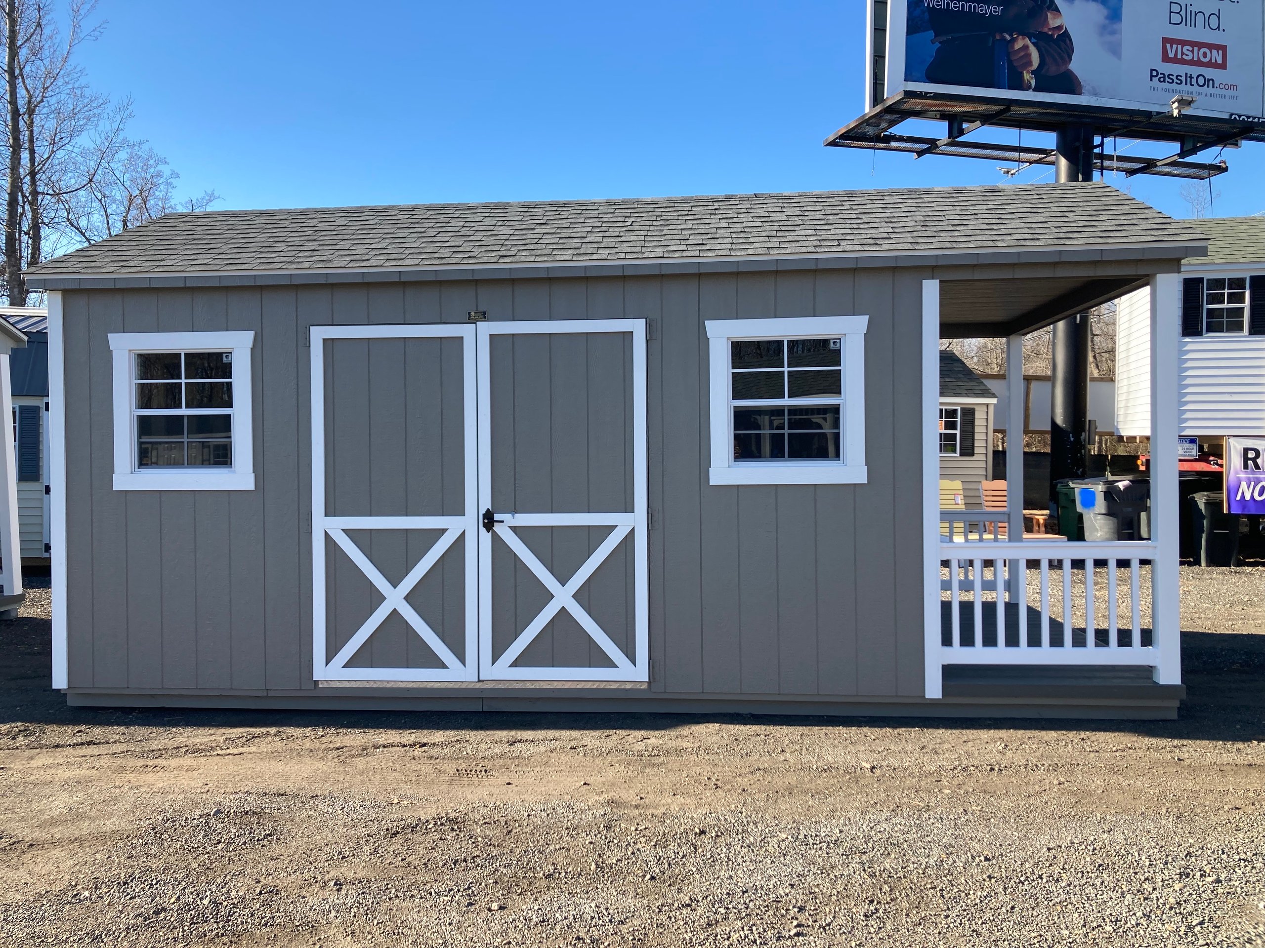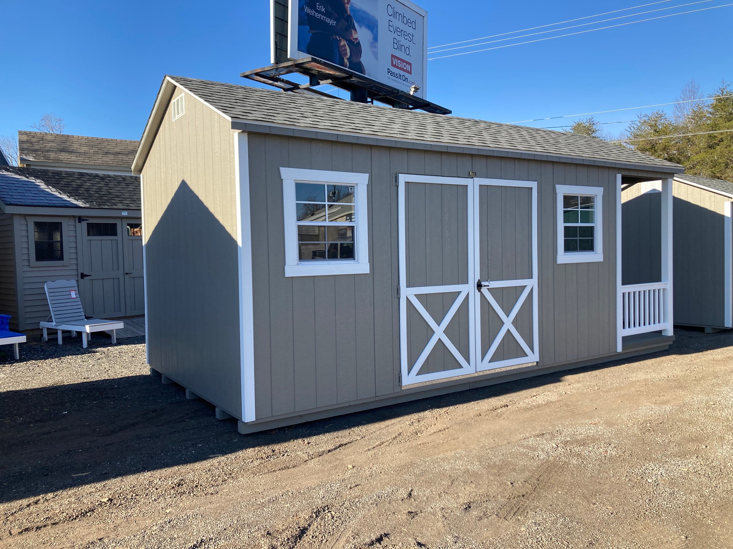Introducing our Highwall A-Frame Amish-built storage shed, a harmonious blend of durability and charm. The 10×20 footprint provides ample space for your belongings. Crafted with precision, the LP Smart Panel siding in Clay exudes timeless elegance, complemented by crisp White trim. The Weatherwood roof, adorned with Architectural Shingles and Roof Felt underlayment, ensures resilience against the elements. Enhance functionality with 2 windows, 2 doors, and thoughtful upgrades like a 4×10 Porch, 2-16″ Shelves, Deluxe Garden Vent, and a Wider 6′ Door. Unmatched craftsmanship meets versatility in this storage solution. Welcome to a space where quality meets convenience.