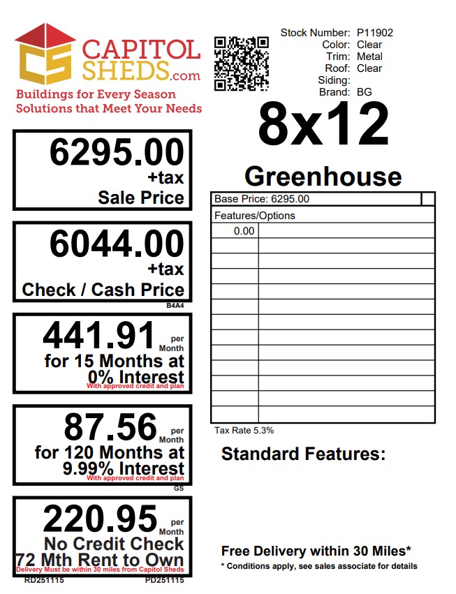 Experience durability and charm with our 8×12 Steel Frame Greenhouse, expertly crafted by Amish artisans. Built to withstand the elements, its sturdy steel frame ensures longevity, while the classic design adds rustic elegance to your backyard. Perfect for cultivating your favorite plants year-round, its spacious interior provides ample room for gardening essentials. The greenhouse’s sleek design and vibrant green finish effortlessly blend with any outdoor setting, creating a picturesque oasis for your gardening endeavors. Elevate your gardening experience with our Amish-built greenhouse – where tradition meets modern functionality.