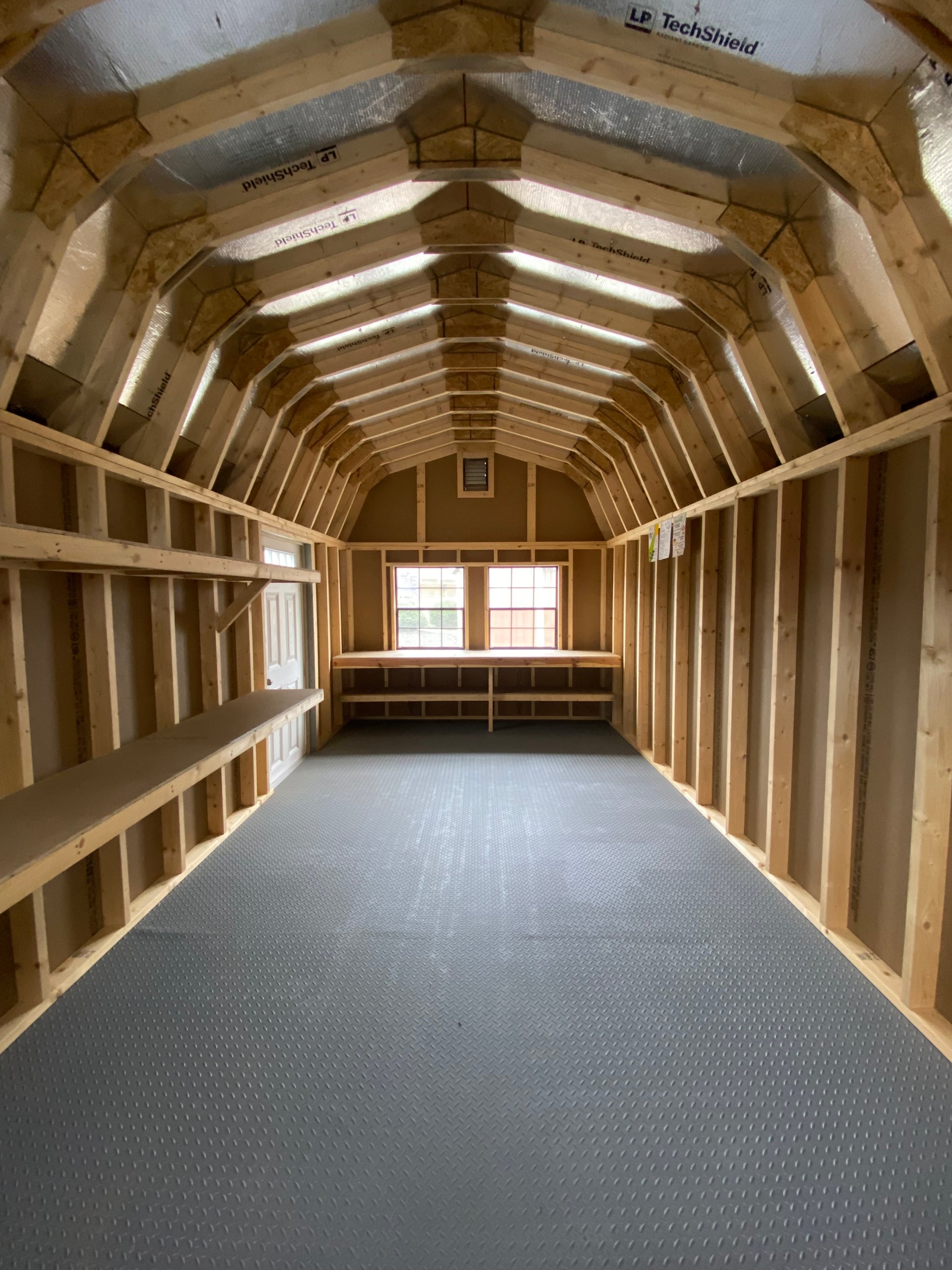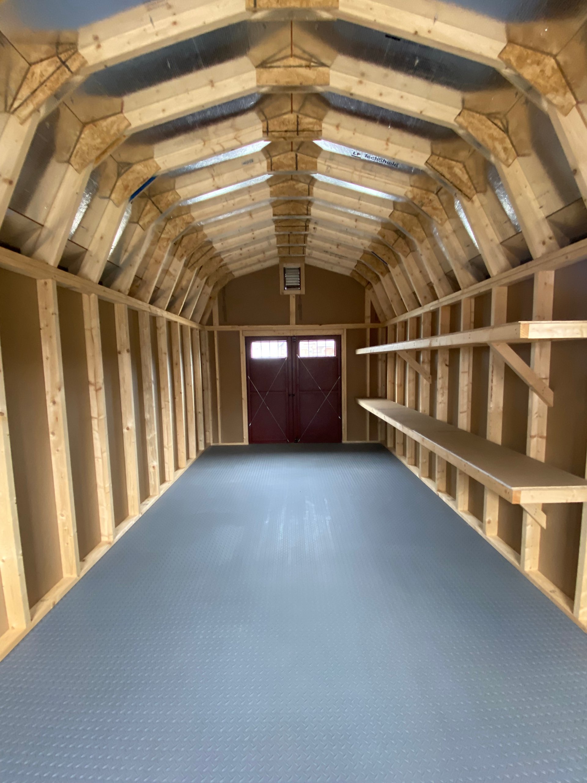 Upgrades: 30×36 Windows, Garden Vents, Additional Fiberglass Door, Transom Windows in Doors, LuxGuard Flooring, 10′ Workbench, 16″x12′ Shelves (2)