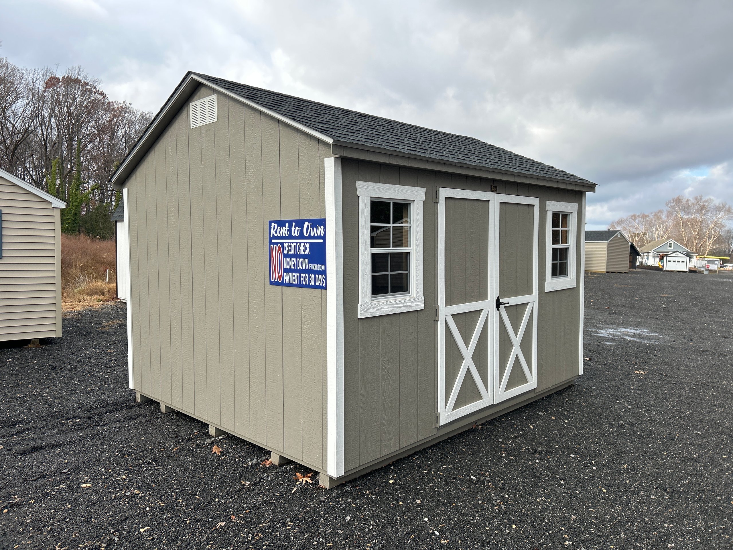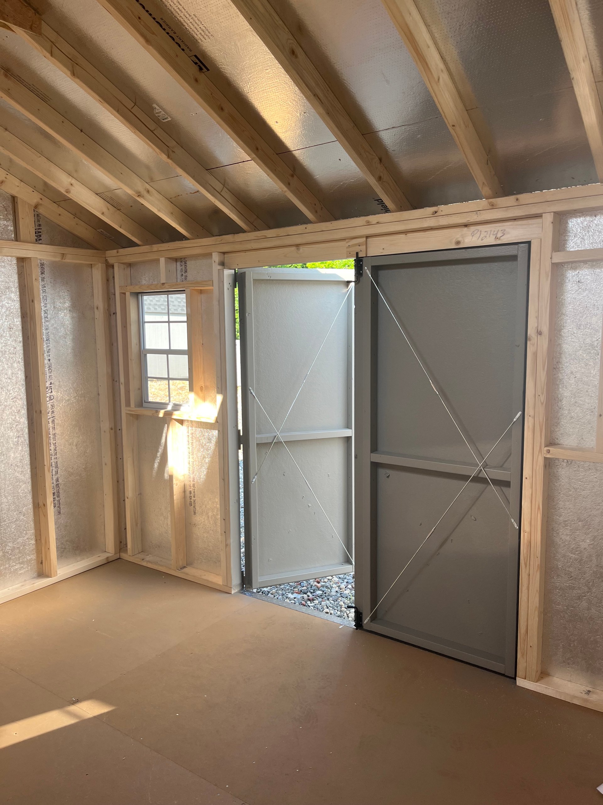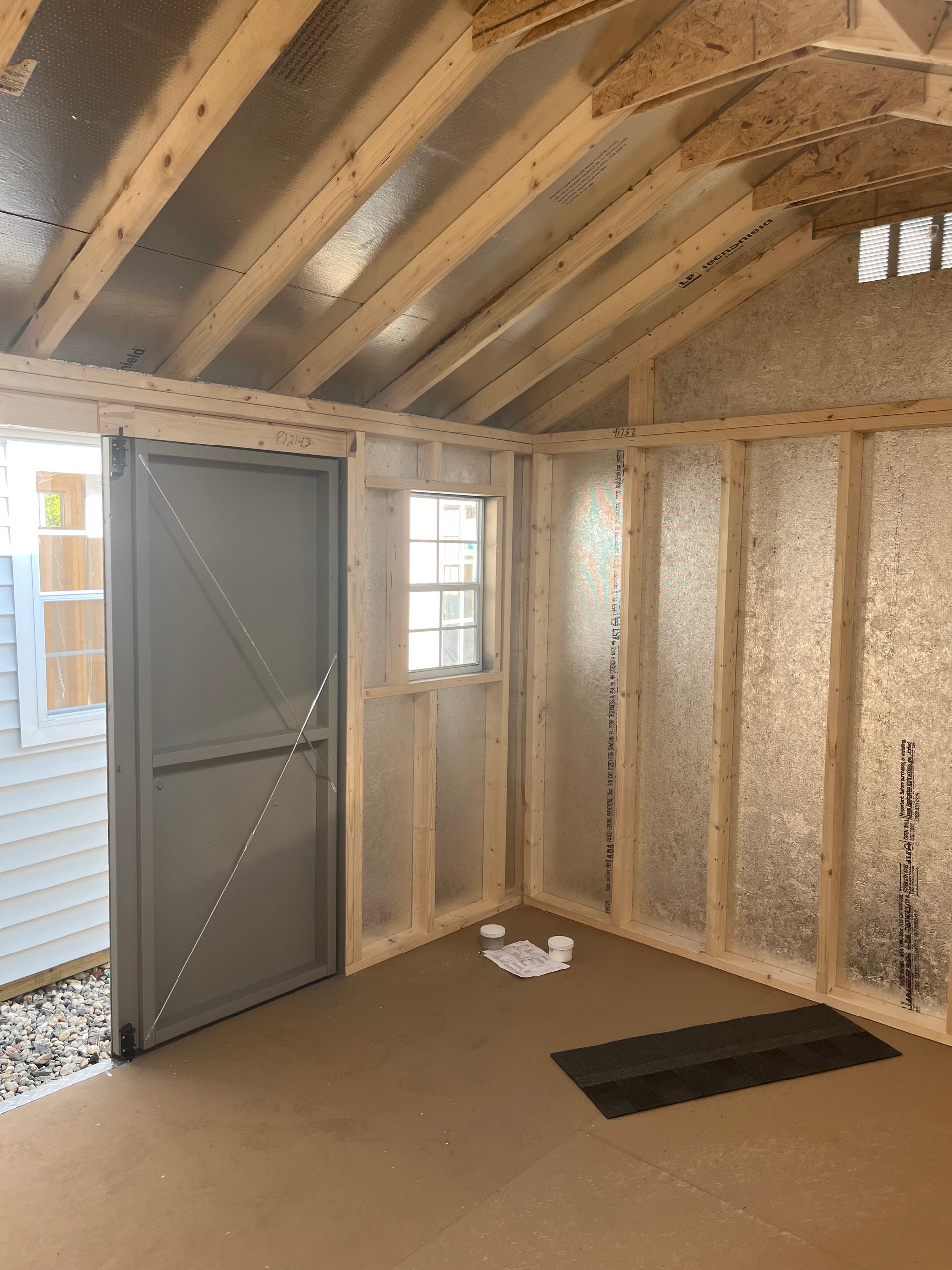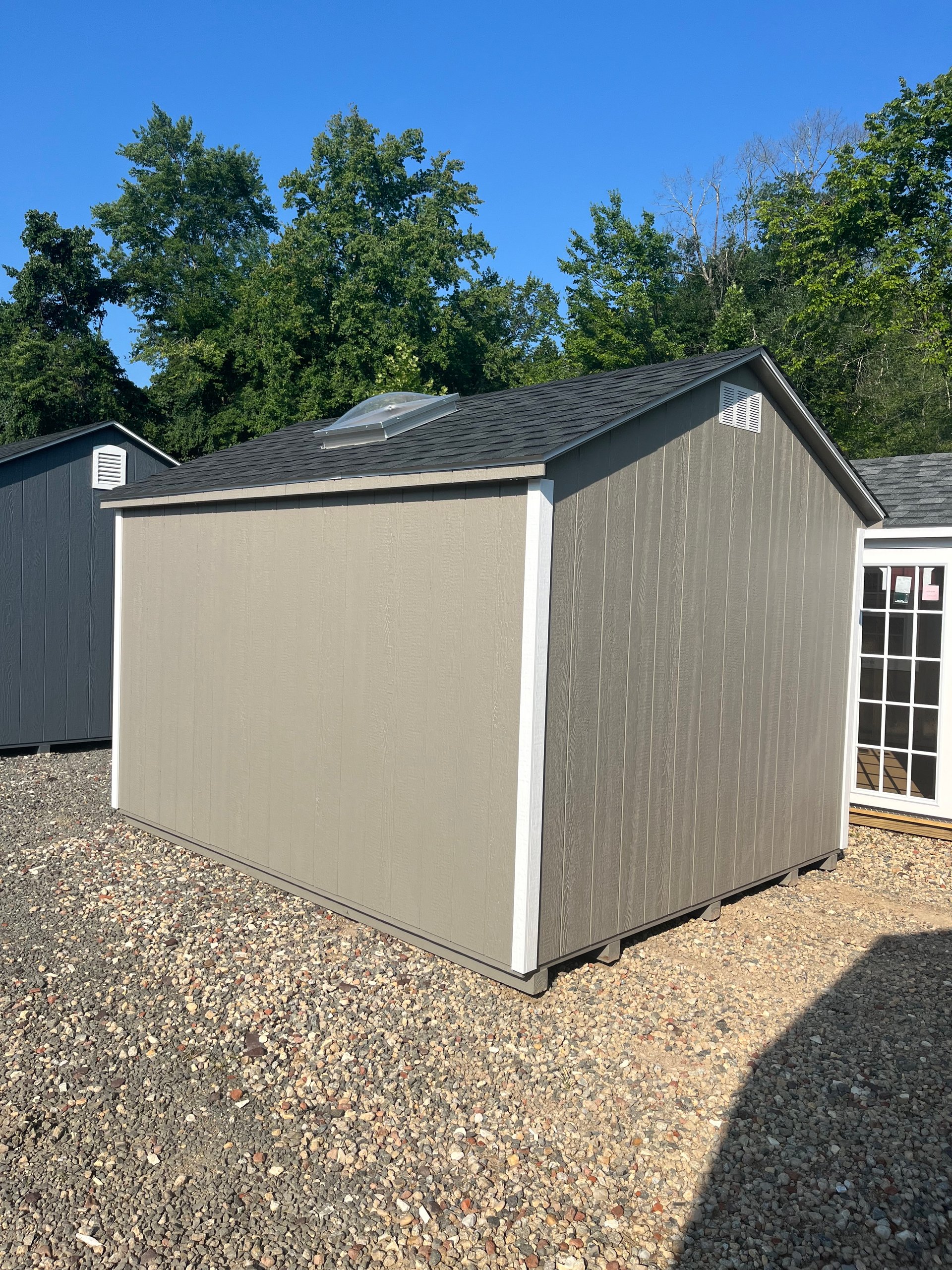 This 10×12 A-Frame keeps it clean and functional with Clay LP Smart Panel siding, White trim, and a contrast-rich Charcoal shingle roof. While it features the standard two windows and double doors, the real upgrade is overhead—a skylight that introduces natural daylight from above, brightening the space without sacrificing privacy. Ideal for workshops, storage, or creative retreats, this shed is framed 16” on center with 2×4 studs and rafters, Tech Shield roof sheathing, and Prostruct flooring underfoot. A straightforward structure with just enough flair to set it apart.