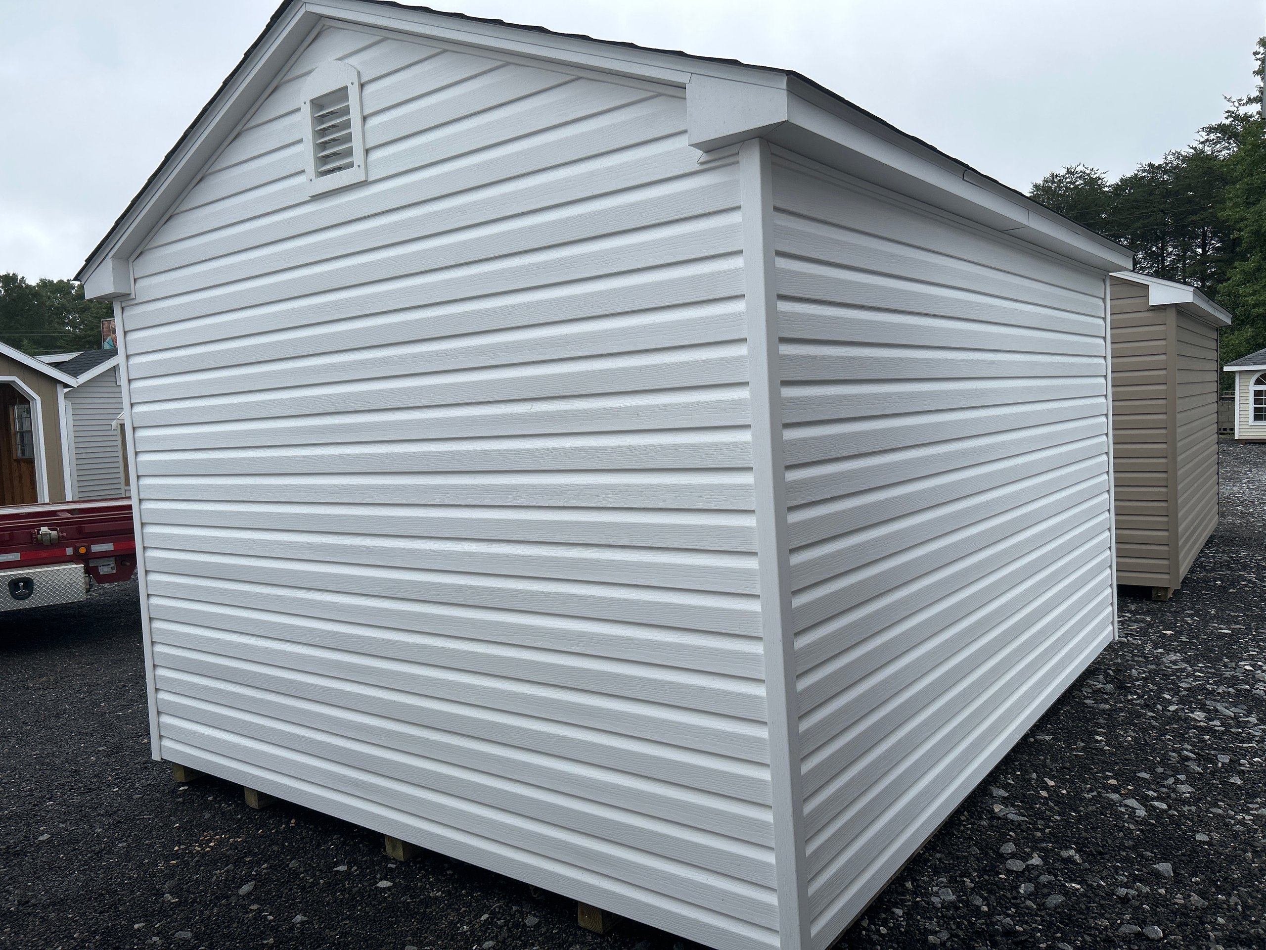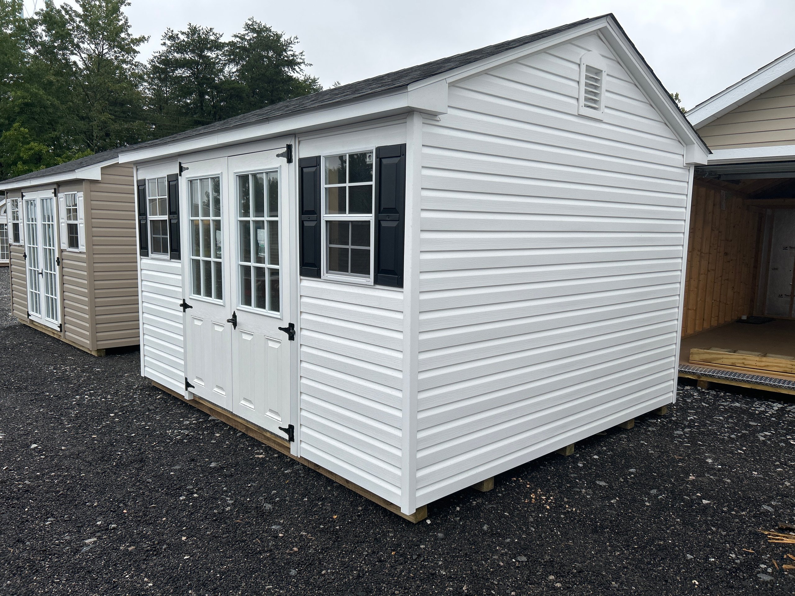 Introducing the Traditional Dutch Barn -A masterpiece of craftmanship by the Amish artisans. This 10×12 A-Frame is built to endure, offering exceptional quality and functionality for all your storage needs. The A-Frame siding provides superior durability while exuding timeless elegance in White , complemented by pristine White. The Black colored dimensional shingles protect your belongings from the elements ensuring long-lasting reliability. With 2 doors for easy access, the interior boasts 2×4 stud wall framing, 2×4 rafter roof framing, and LP Tech Shield roof sheeting for added strength. The LP Prostruct Flooring, coupled with pressure-treated 2×4 floor joists ensures stability and longevity. invest in the A-Frame for a storage solution that’s built to last.