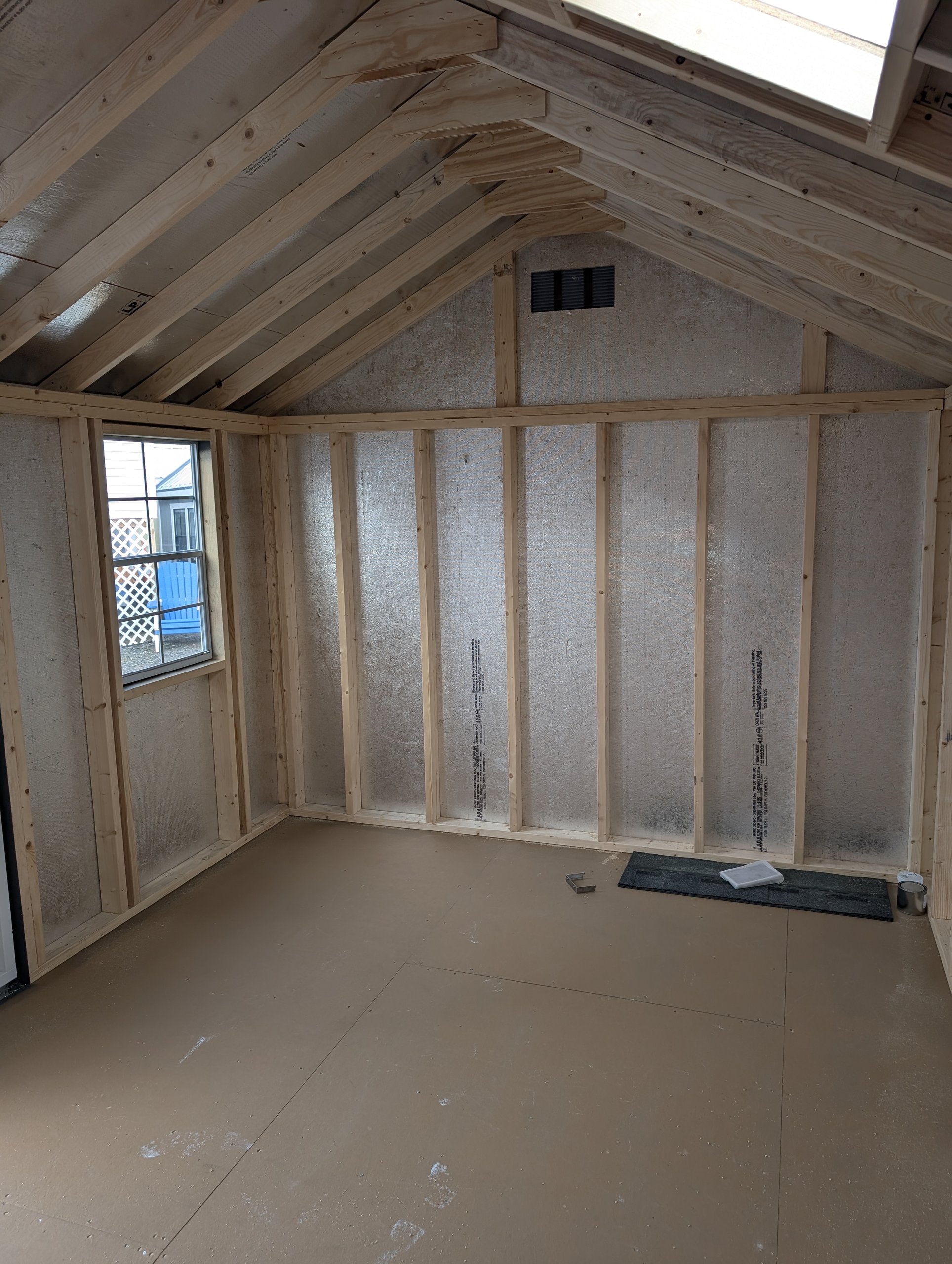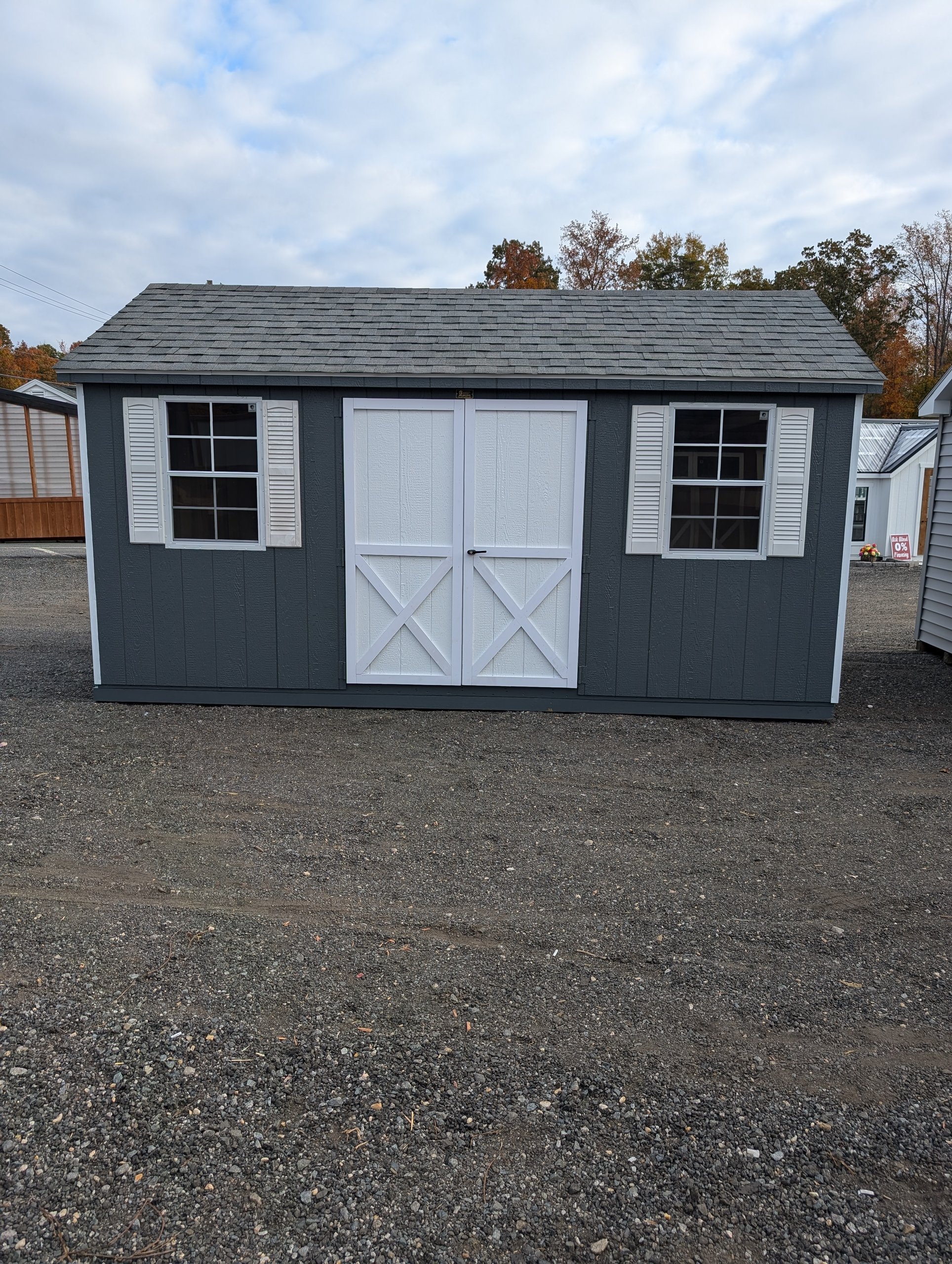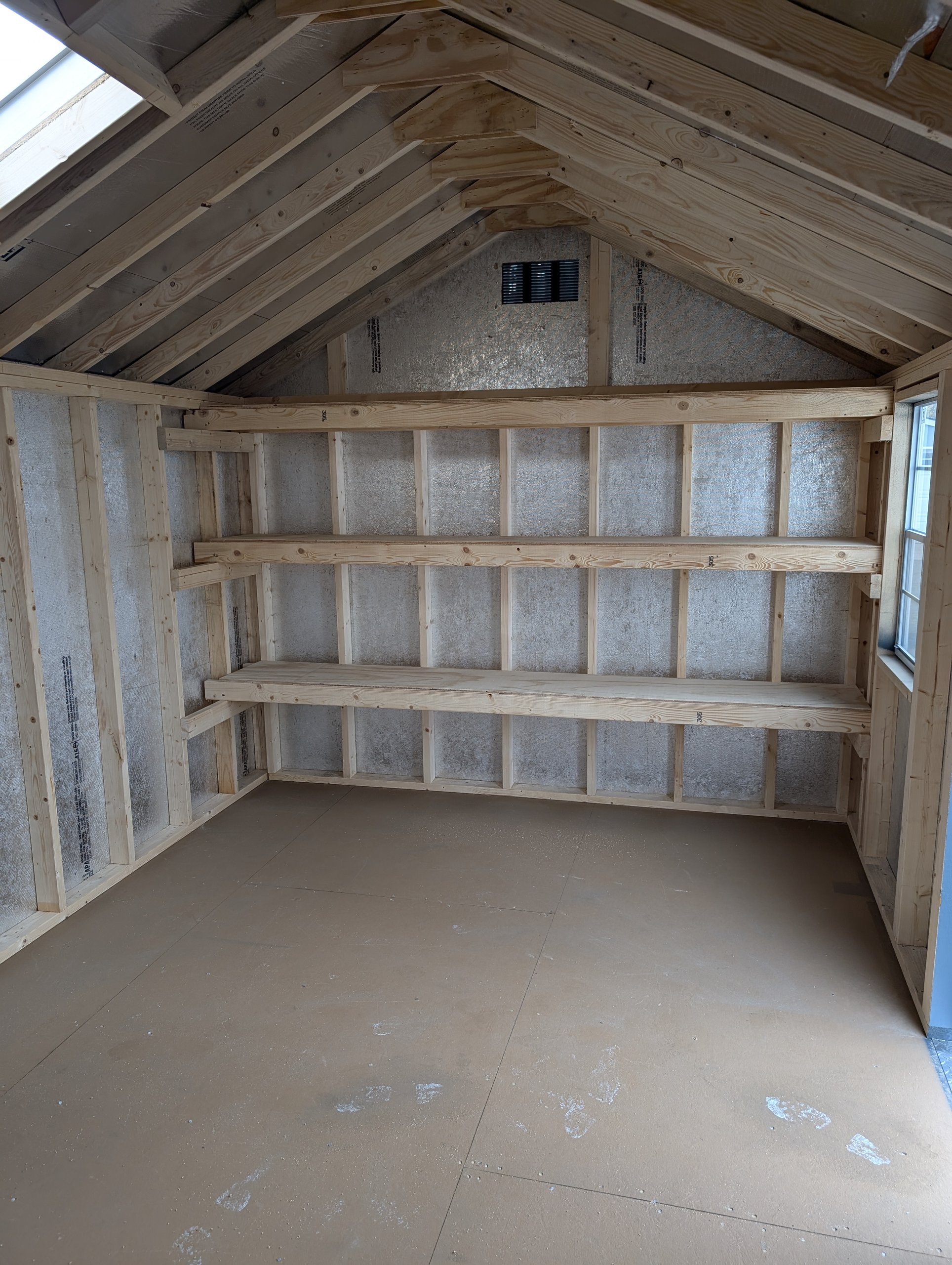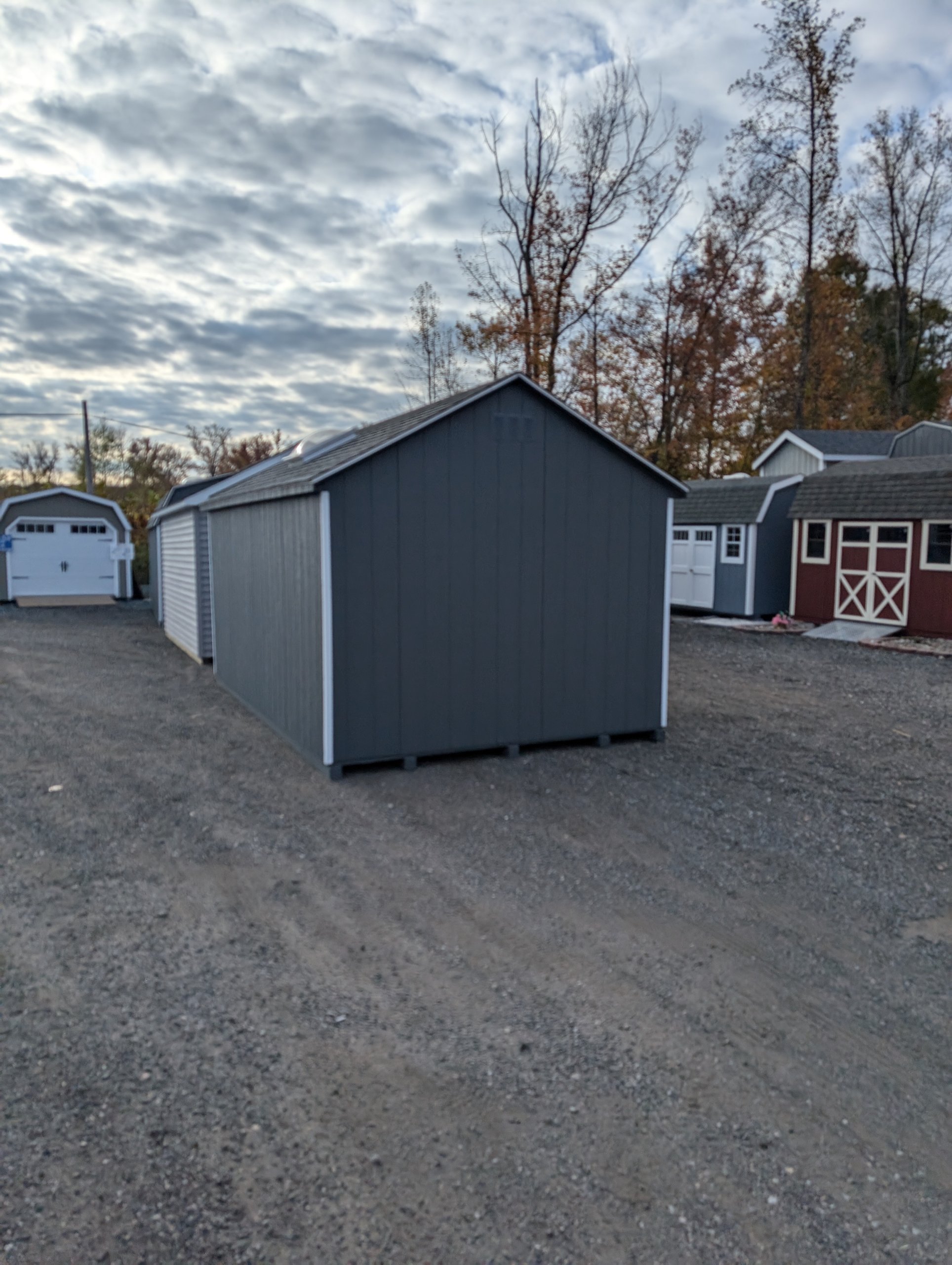 This Amish-built A-Frame storage shed offers durability and style, measuring 10×16 with a sleek dark gray exterior and crisp white trim. Constructed with LP Smart Panel siding and dimensional shingles, it’s designed to withstand the elements. Featuring two 24″x36″ windows, two doors, and upgraded with a 2×2 solar skylight for natural light, this shed enhances both storage and aesthetics. The roof includes LP Tech Shield sheeting, while the floor is built with sturdy LP Prostruct Flooring. For added organization, it includes 16″ shelving. Built with quality materials and craftsmanship, this shed is perfect for your outdoor needs.