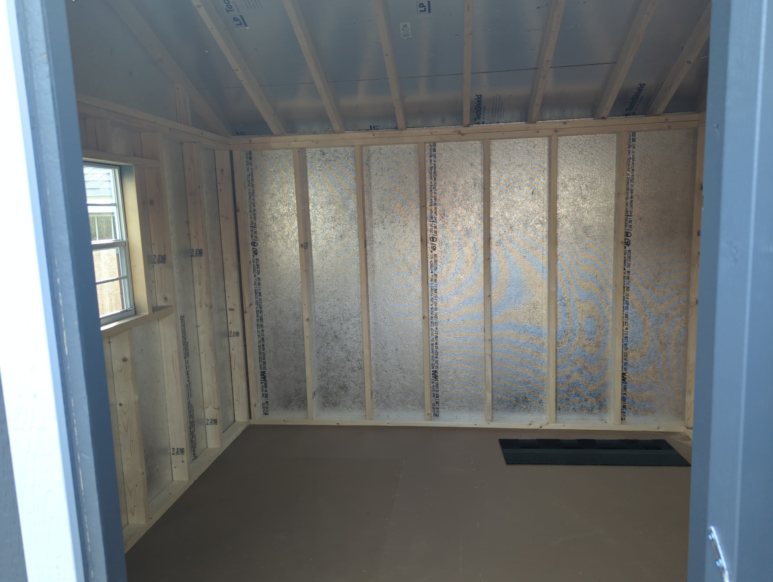 This Amish-built 10×10 A-Frame shed delivers compact versatility with trusted craftsmanship. Finished in Dark Gray LP Smart Panel siding with crisp white trim and a Charcoal shingle roof, it offers modern curb appeal. Built with durable 2×4 wall and roof framing, LP Tech Shield roof sheeting, and roof felt underlayment, it’s designed for long-lasting performance. LP ProStruct flooring over pressure-treated joists provides a solid foundation. Two windows bring in natural light, while the upgraded 5′ door allows easy access for equipment, tools, or hobby storage.