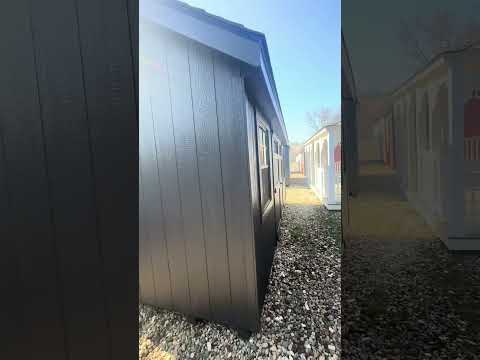 The 10×16 Kingston shed stands out with elevated design and premium upgrades. Crafted with LP Smart Panel siding in Mopboard and topped with a charcoal architectural shingle roof, it
