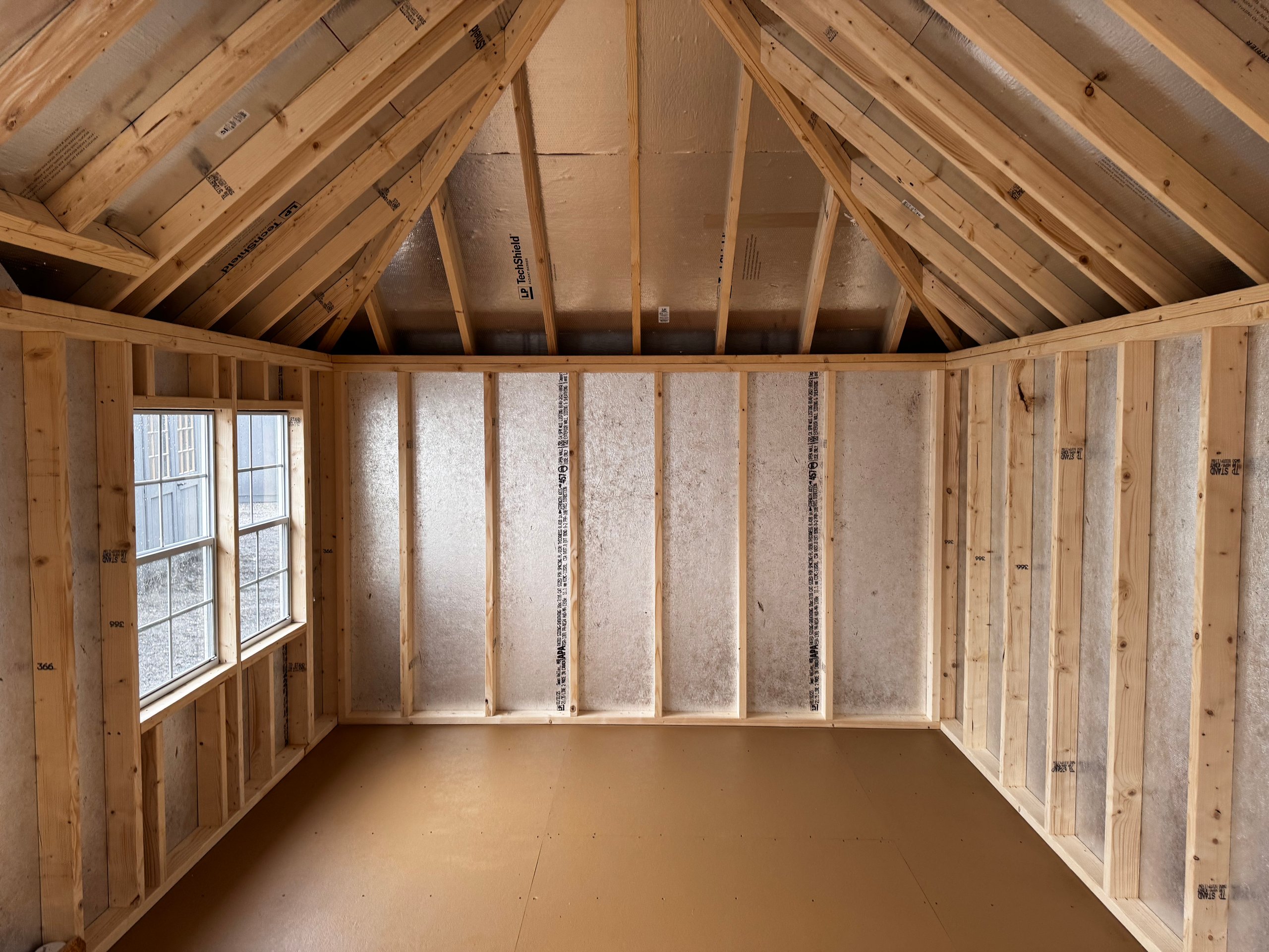 Wall Framing: 2×4 studs 16 inches on center