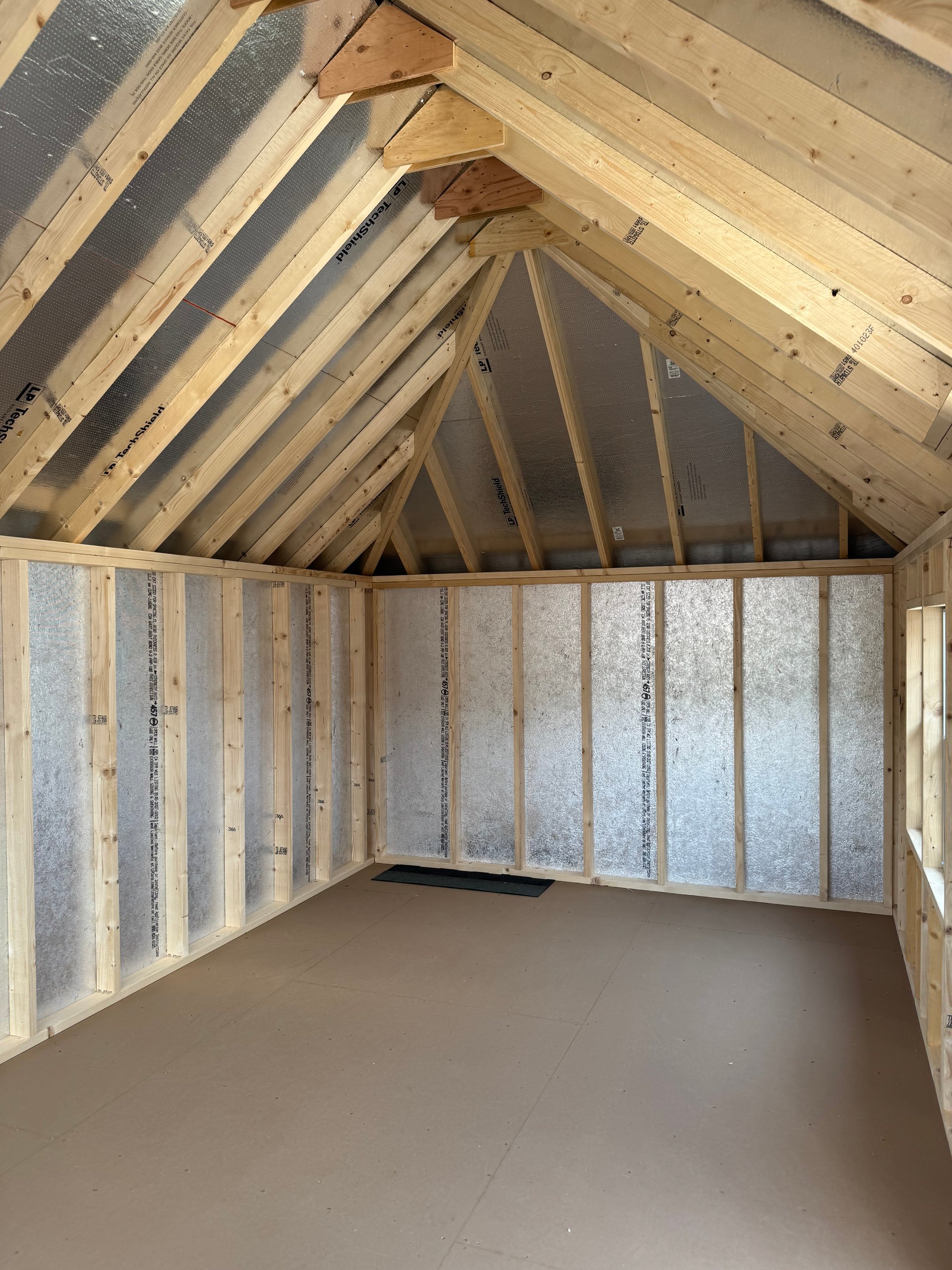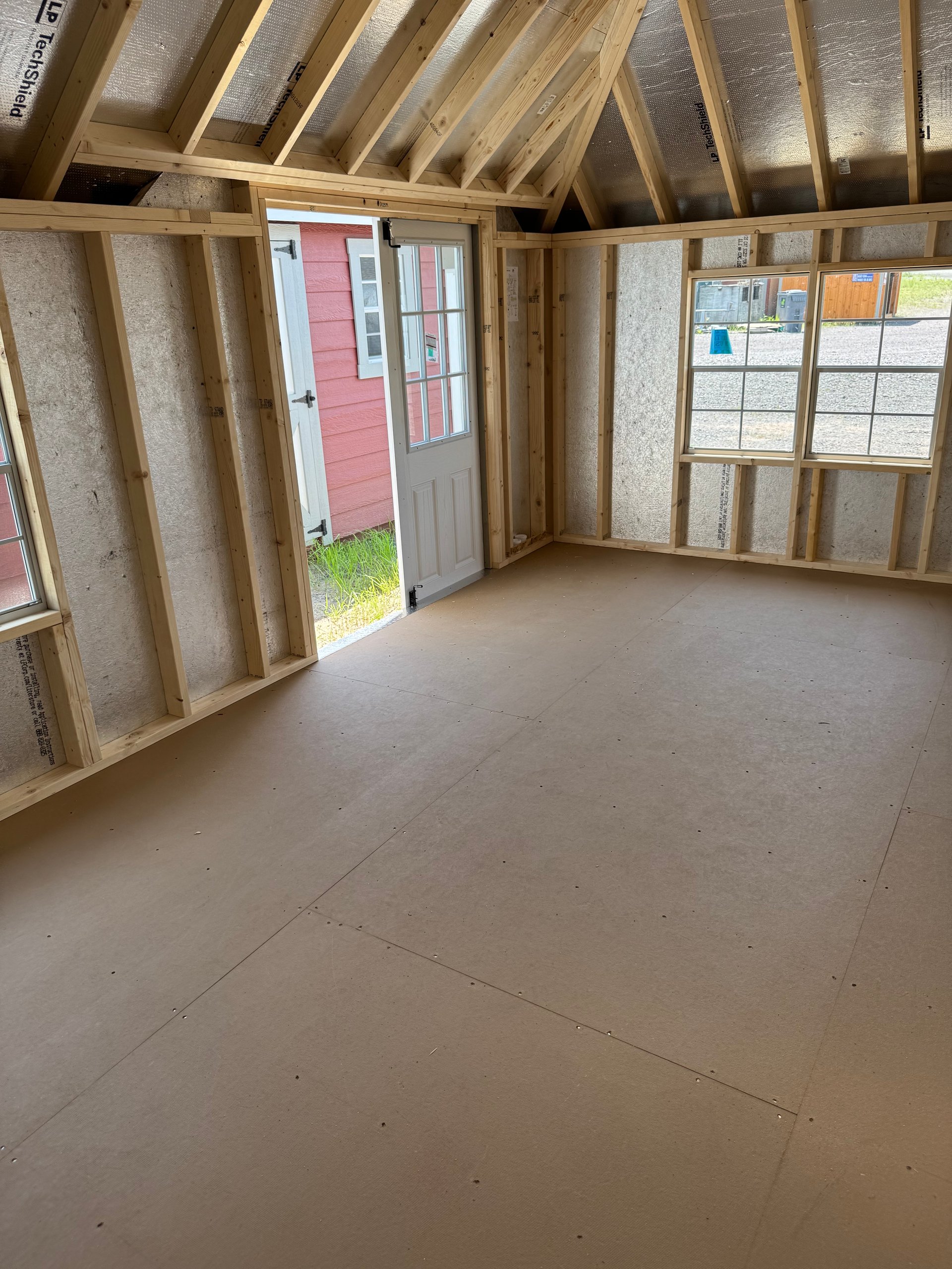 This 10×18 Manchester delivers elevated simplicity with clay siding, crisp White trim, and a bold Black roofline. Two additional 24×36 windows bring the total to four, brightening the interior while complementing the fiberglass double doors adorned with 9-lite inserts. Z shutters enhance the classic facade, and ridge vents help regulate temperature for year-round functionality. Built with 2×4 framing throughout, 16” on center, it includes LP Tech Shield roof sheathing and Prostruct flooring for enduring performance. Blending timeless curb appeal with thoughtful upgrades, this shed stands ready for everything from backyard storage to creative workspace.