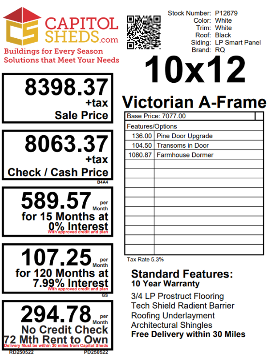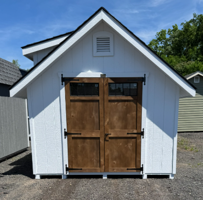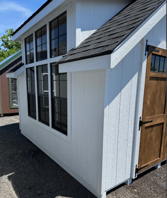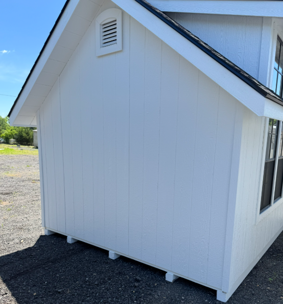 Introducing our A-Frame Storage Shed, a masterpiece of craftsmanship by the Amish, designed for both elegance and functionality. With its generous 10×12 size, this shed offers ample space for all your storage needs. The Painted LP siding in bright white seamlessly blends into any surroundings, complemented by a crisp White trim. The Dark Shingles provide durable protection, while the 2×4 studs, 16″ on center, ensure robust construction. Enjoy natural light through 6 windows and easy access through a barn style door. Elevate your storage solutions with timeless Amish quality.