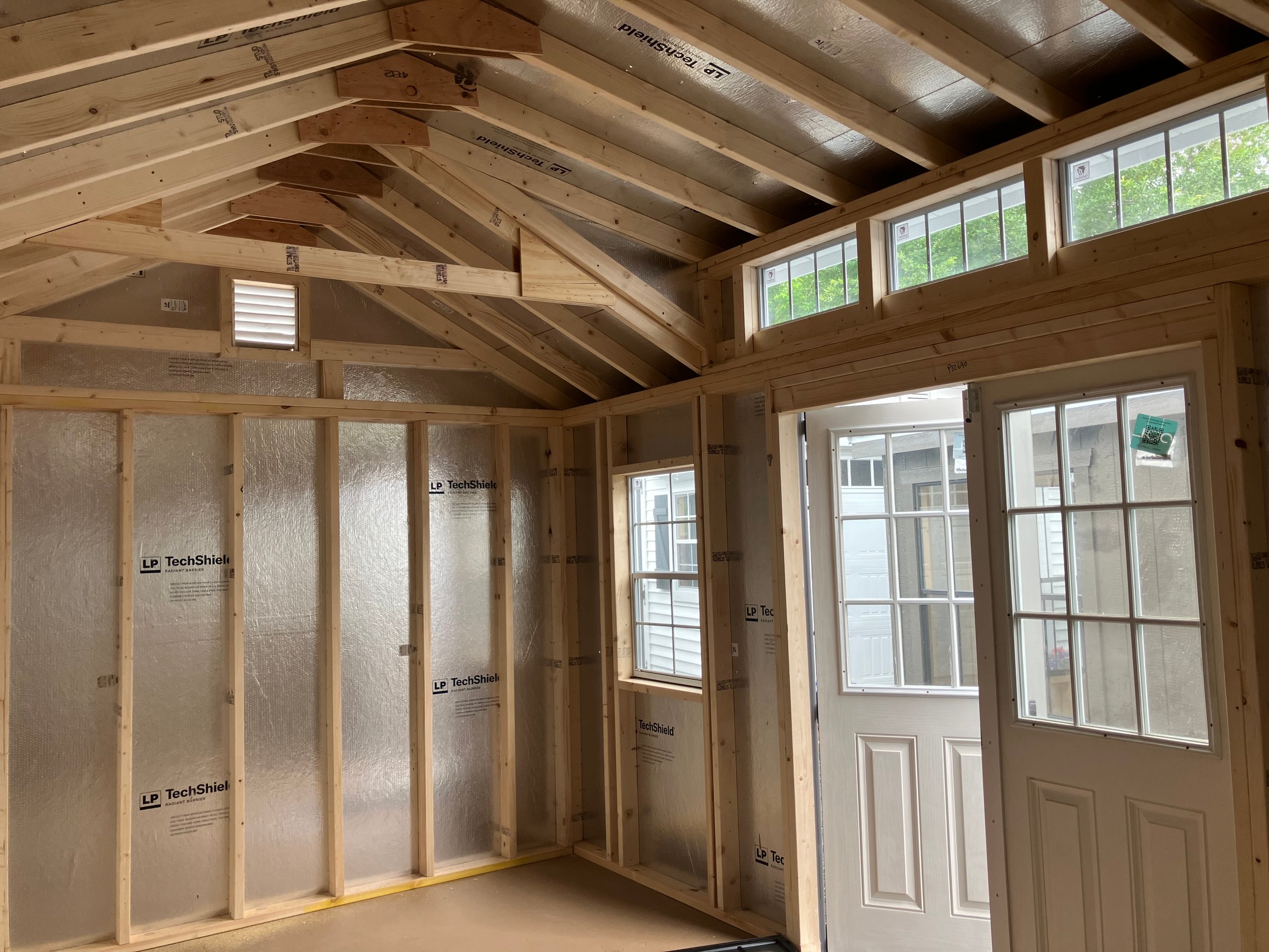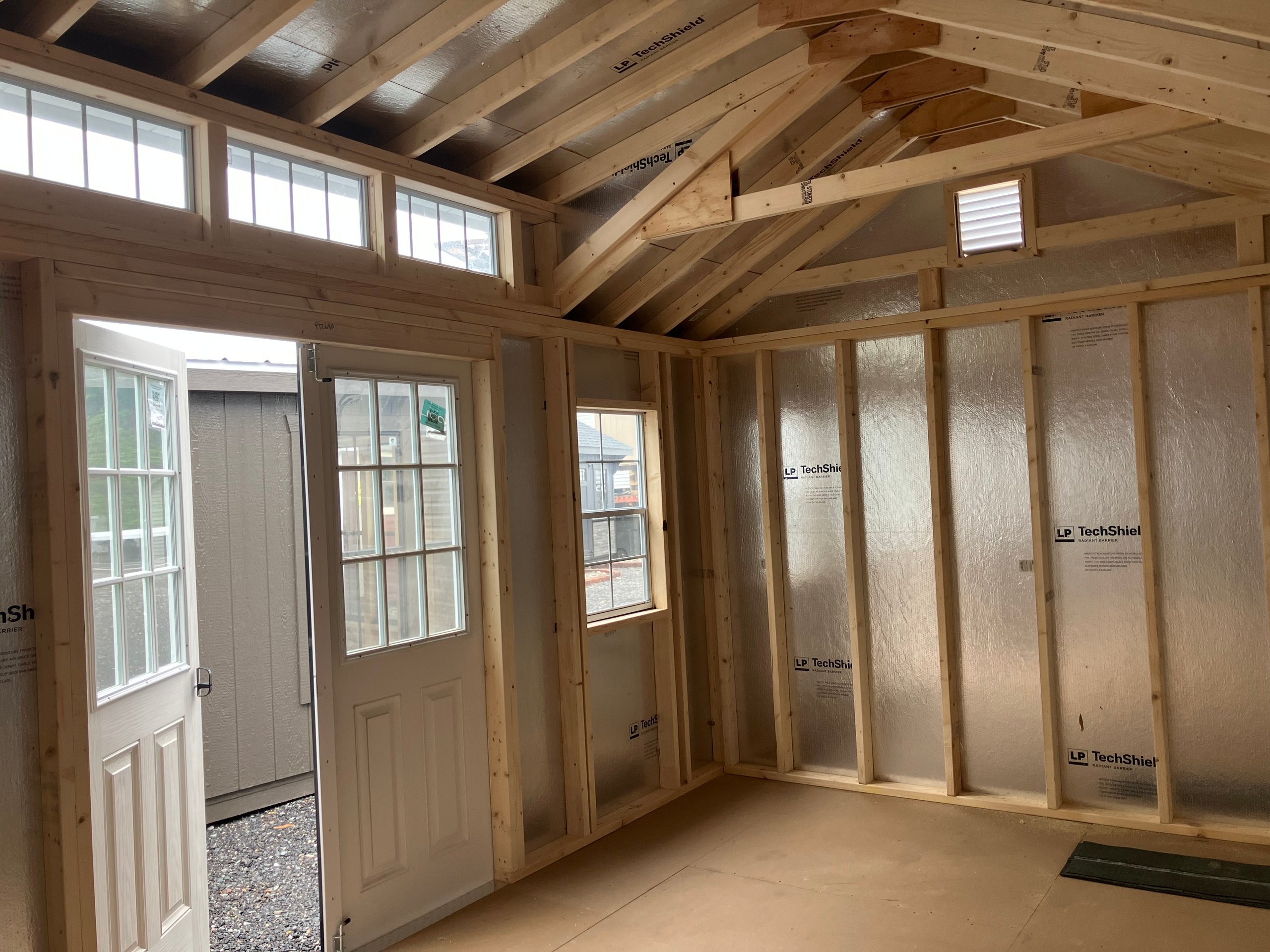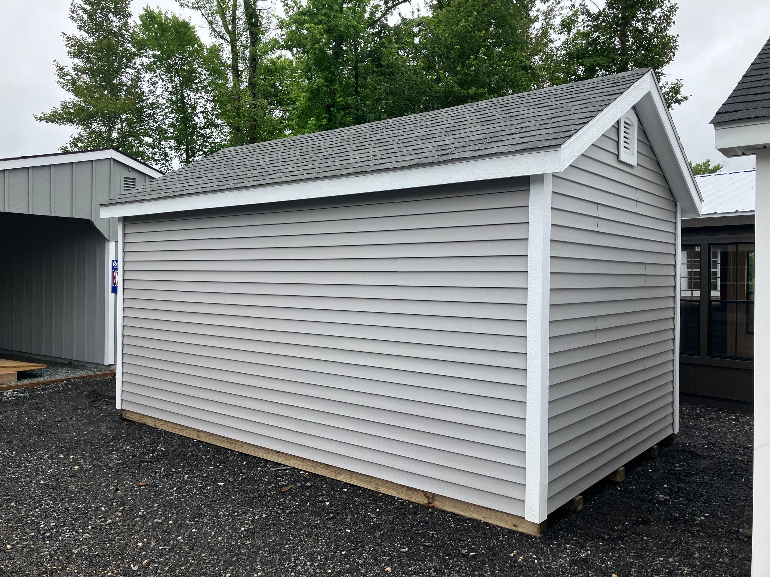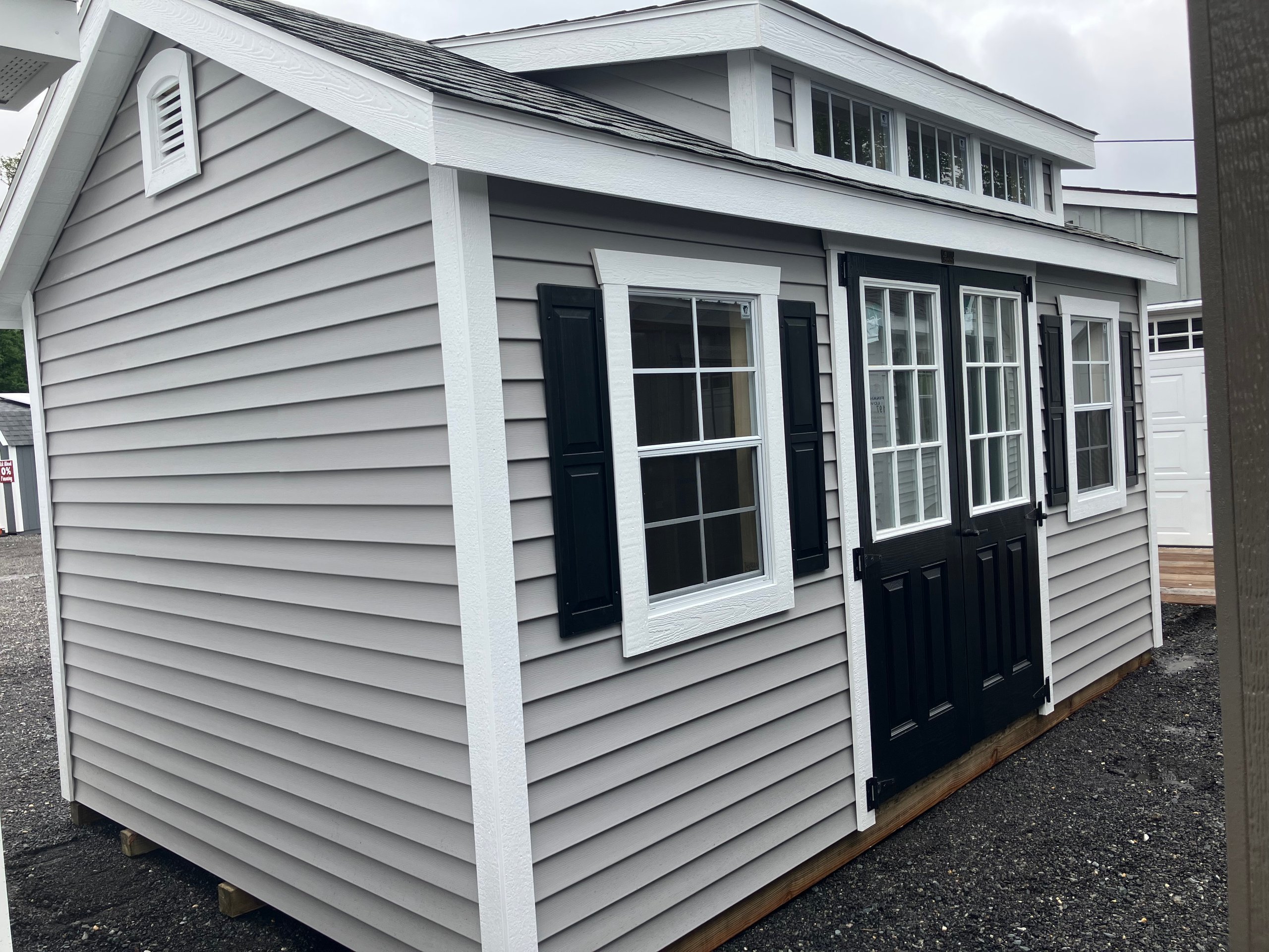 The 10×16 Colonial A-Frame shed blends timeless aesthetics with robust construction. Clad in Flint traditional vinyl siding with crisp white trim and a Virginia Slate roof, this shed makes a sophisticated statement. Seven windows, including two 24×36 upgrades and elegant transom windows, ensure ample natural light. Two upgraded 9-lite doors add both style and functionality, while Victorian vents enhance ventilation. Constructed with 2×4 wall and roof framing, LP Prostruct flooring, and pressure-treated floor joists, this shed is built to last. Complete with window trim and premium features, it’s ideal for stylish storage or a functional workspace.