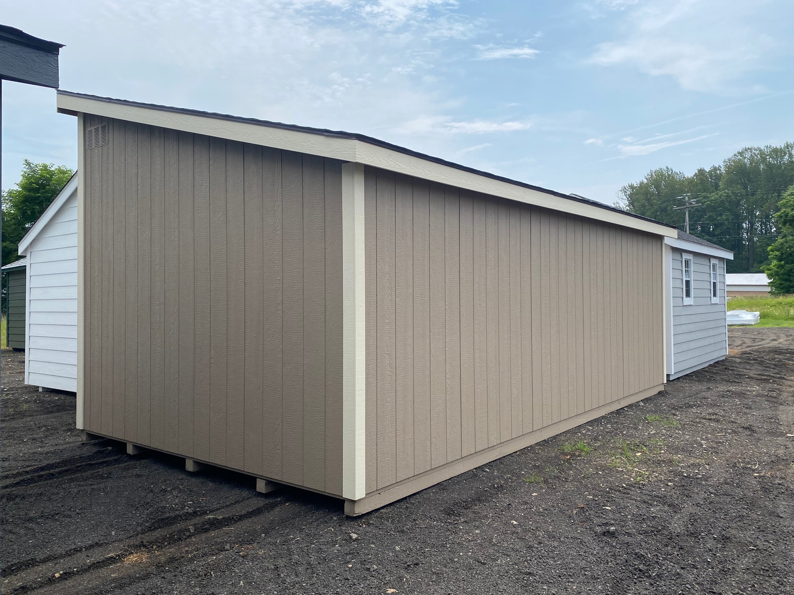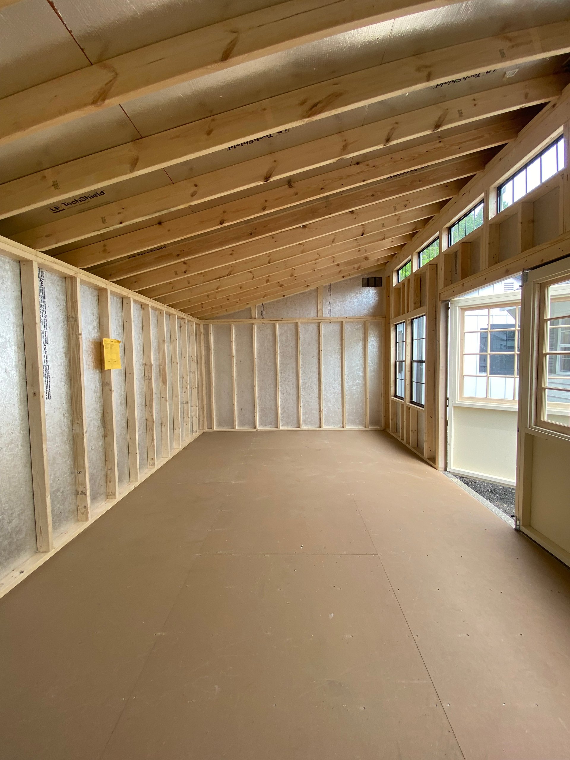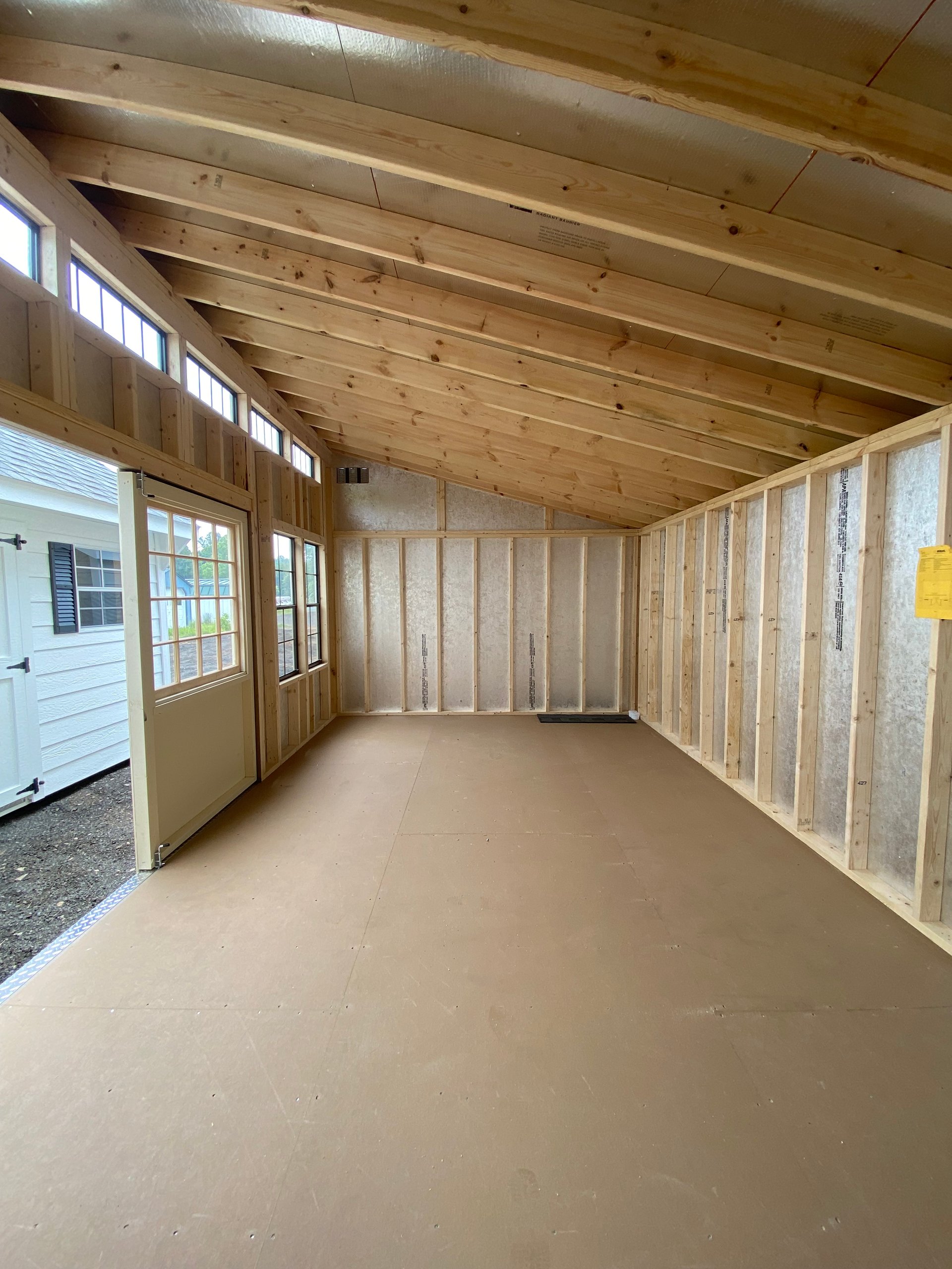 Style Name: Colonial Studio Size: 12×21’8″  Siding: LP Smart Panel Main Color: Buckskin Trim Color: Navajo Roof Color: Weatherwood Roofing: Architectural Shingles Roofing Underlayment: Roof Felt Paper Number of Windows: 4 Number of Doors: 2 Wall Framing: 2×4 studs 16 inches on center Roof Framing: 2×4 rafters 16 inches on center Roof Sheeting: LP Tech Shield Flooring: LP T&G Prostruct Flooring Floor Joists: Pressure Treated 2×4 joists 12 inches on center   Included Upgrades: