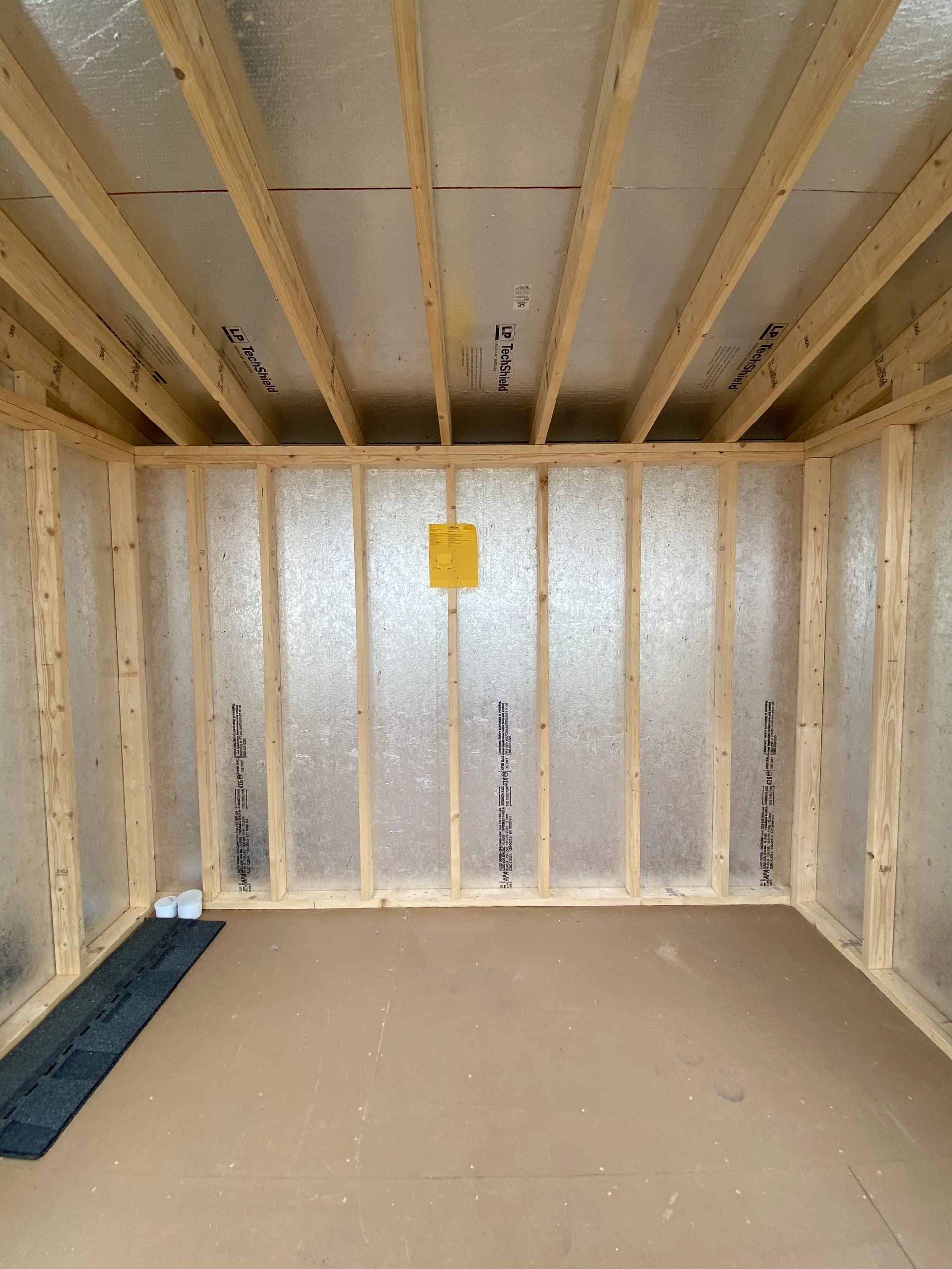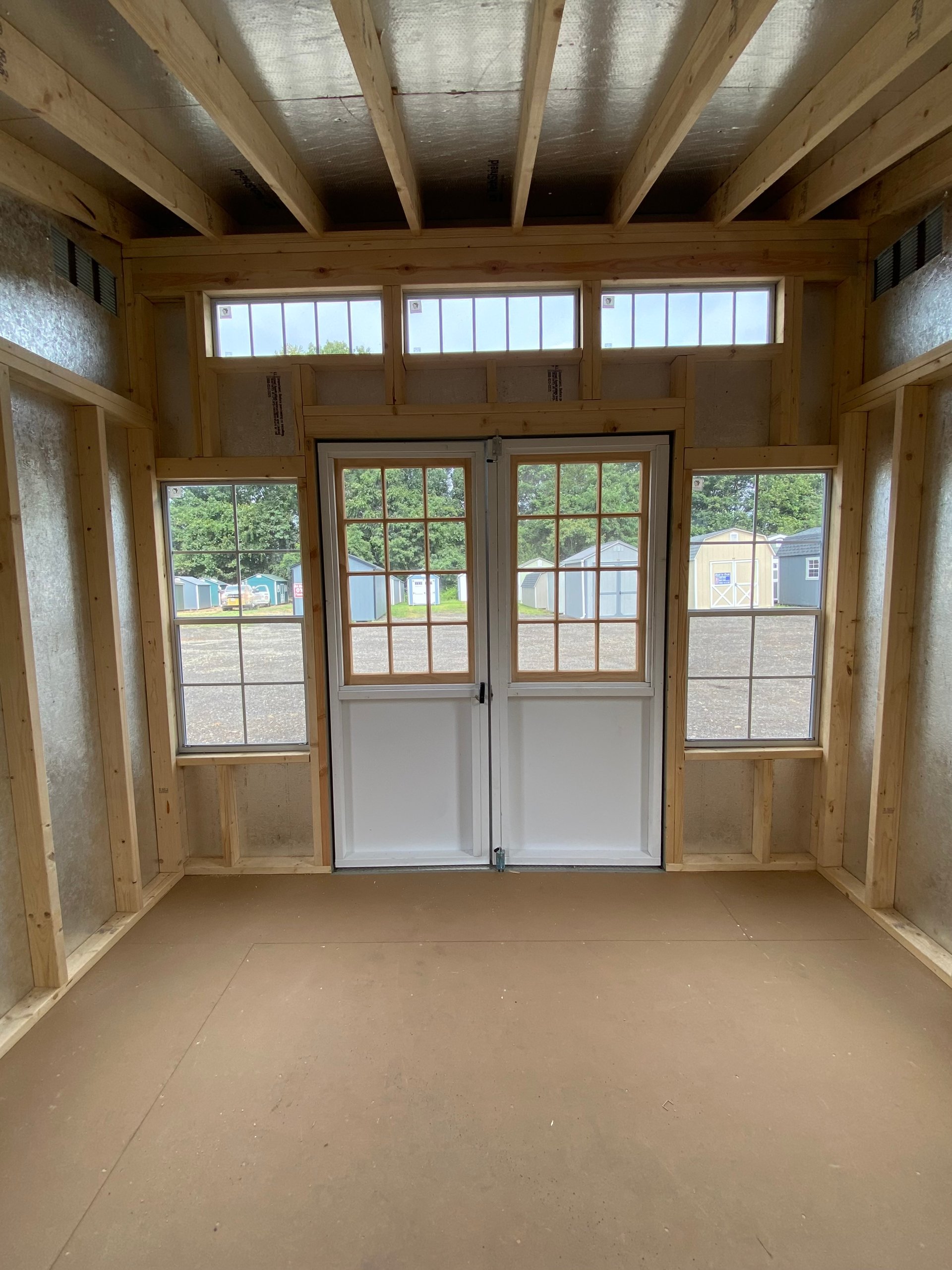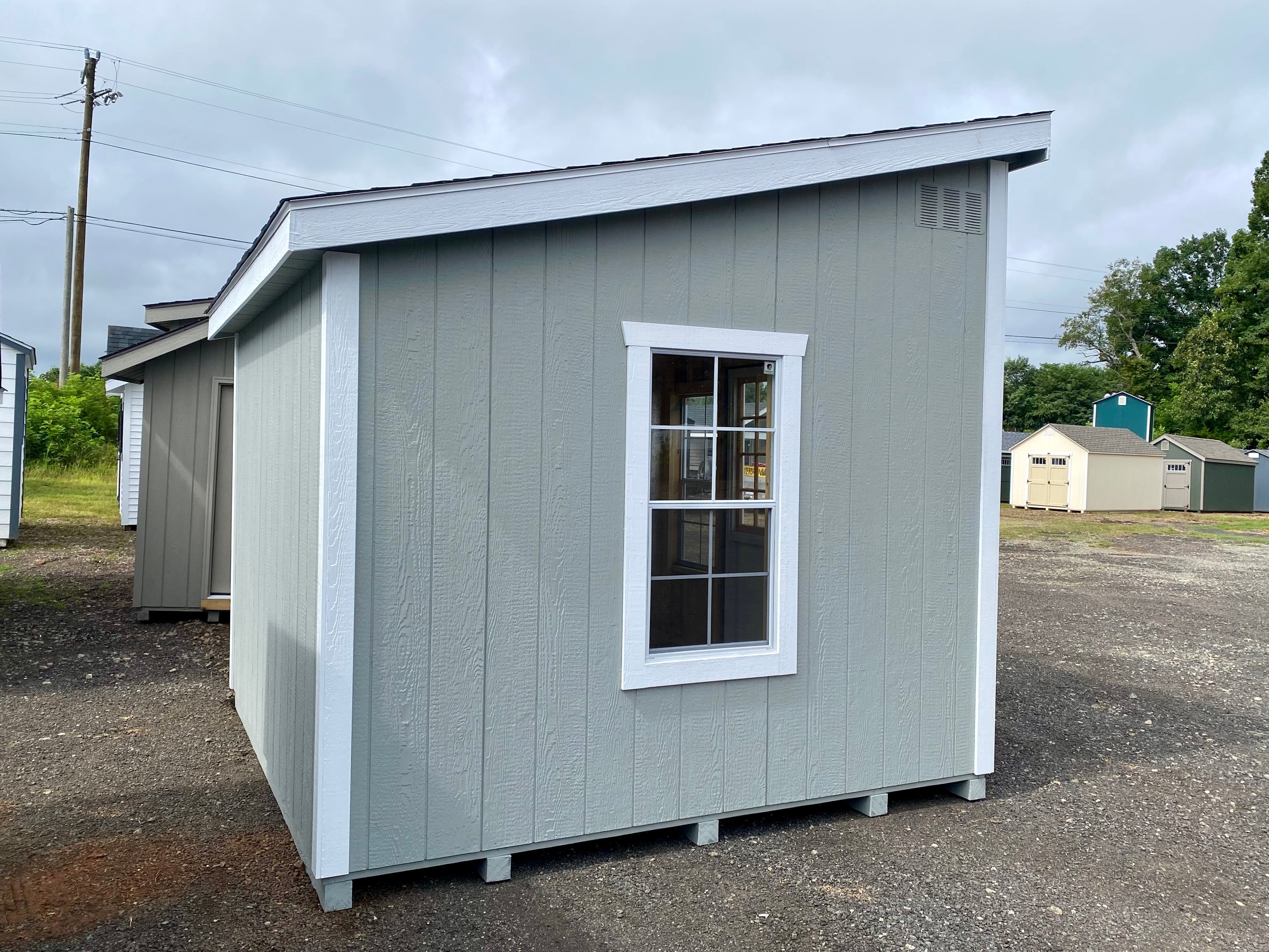 Style Name: Colonial Studio Size: 10×10 Siding: LP Smart Panel Main Color: Light Gray Trim Color: White Roof Color: Virginia Slate Roofing: Architectural Shingles Roofing Underlayment: Roof Felt Paper Number of Windows: 4 Number of Doors: 2 Wall Framing: 2×4 studs 16 inches on center Roof Framing: 2×4 rafters 16 inches on center Roof Sheeting: LP Tech Shield Flooring: LP T&G Prostruct Flooring Floor Joists: Pressure Treated 2×4 joists 12 inches on center   Included Upgrades: