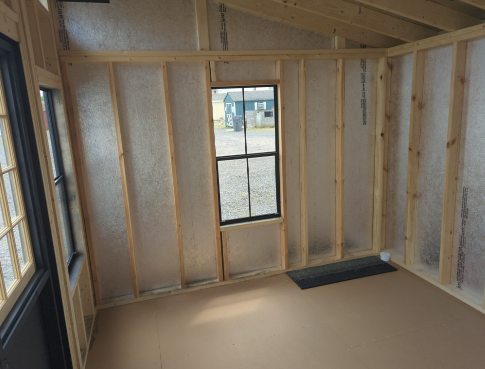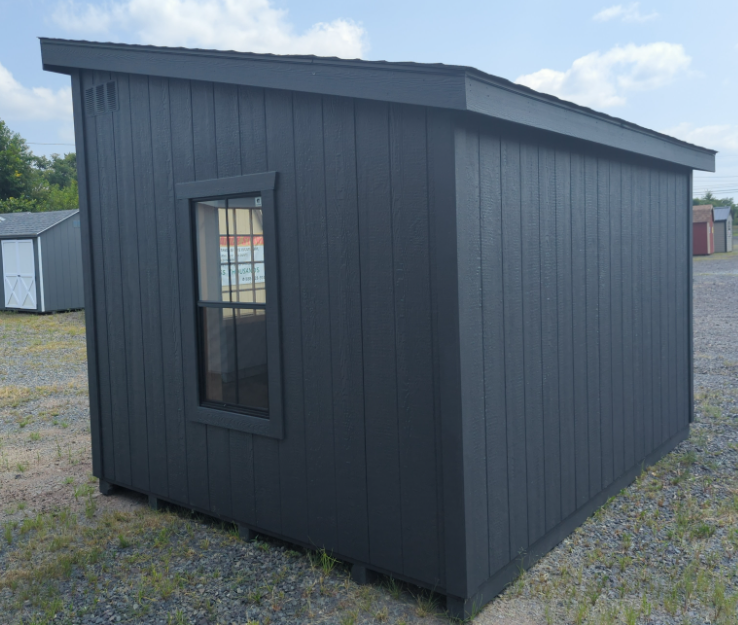 This 10×12 Colonial Studio delivers striking modern style with exceptional light and durability. Finished in Mopboard LP Smart Panel siding with matching trim and a bold black roof, it offers a sleek, cohesive exterior. Two oversized black windows and seven transom windows flood the interior with natural light, creating an open studio feel. Upgraded 3/4″ LP ProStruct flooring with 8″ on-center pressure-treated floor joists ensures long-term strength. Wide 8′ wood double doors with wood sash inserts provide an inviting entry, while extensive window trim adds refined architectural detail throughout.
