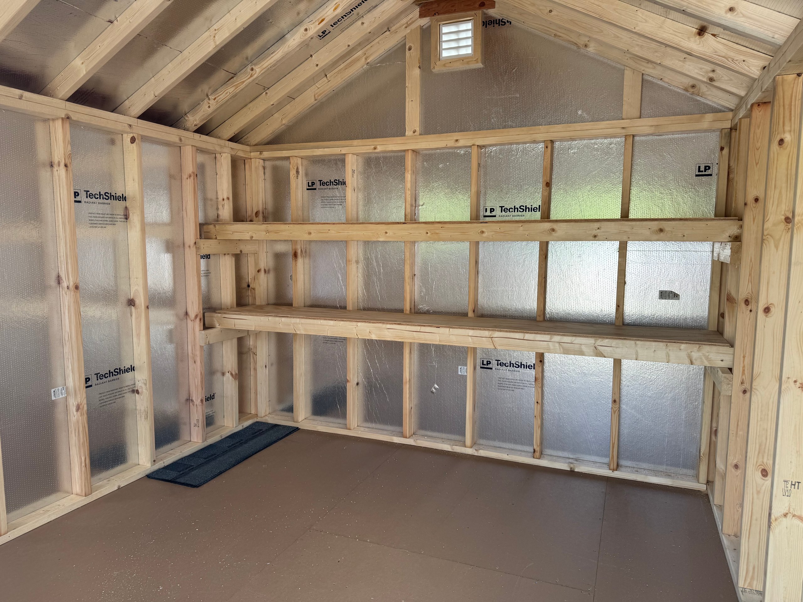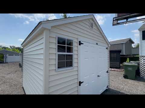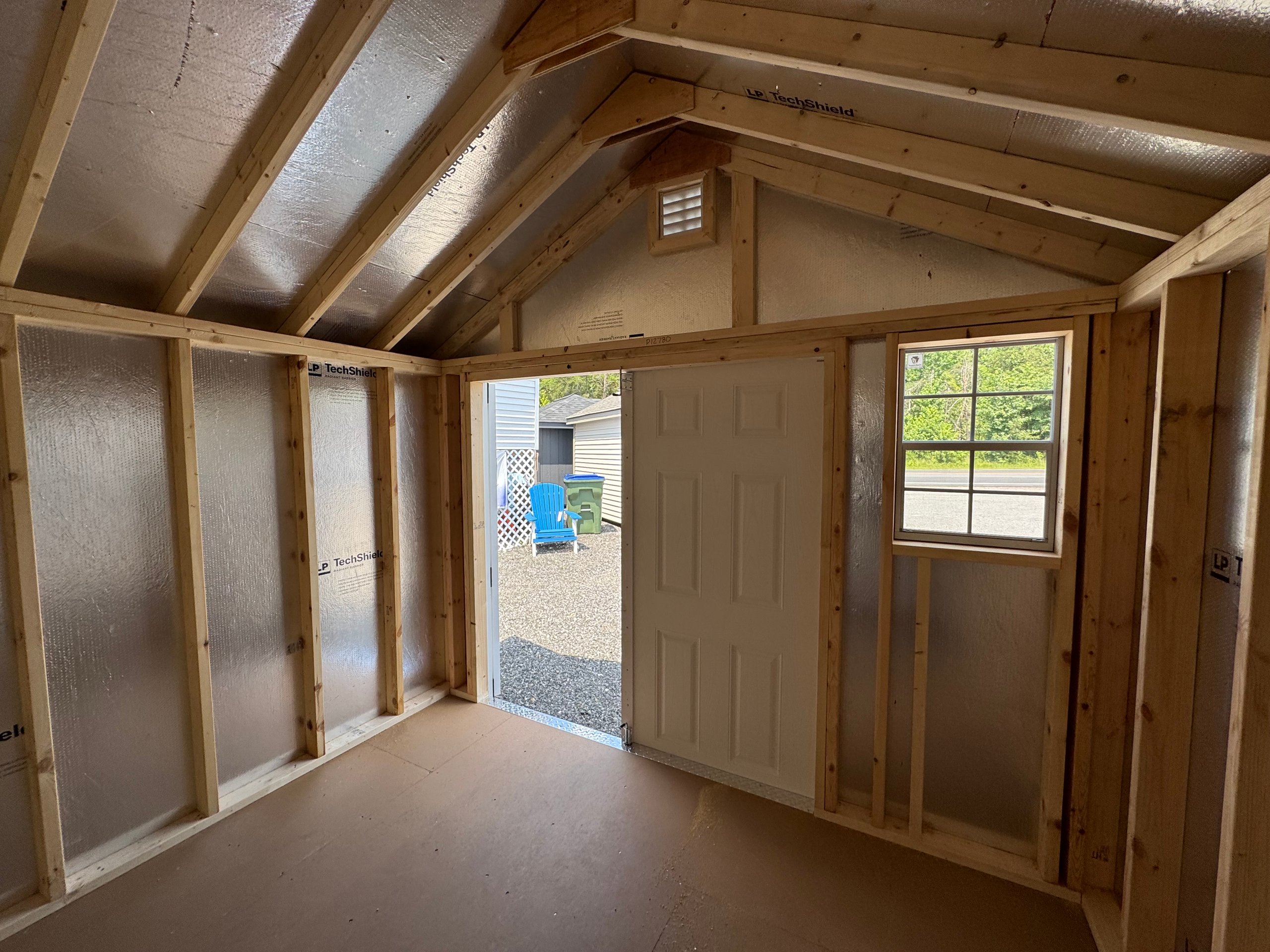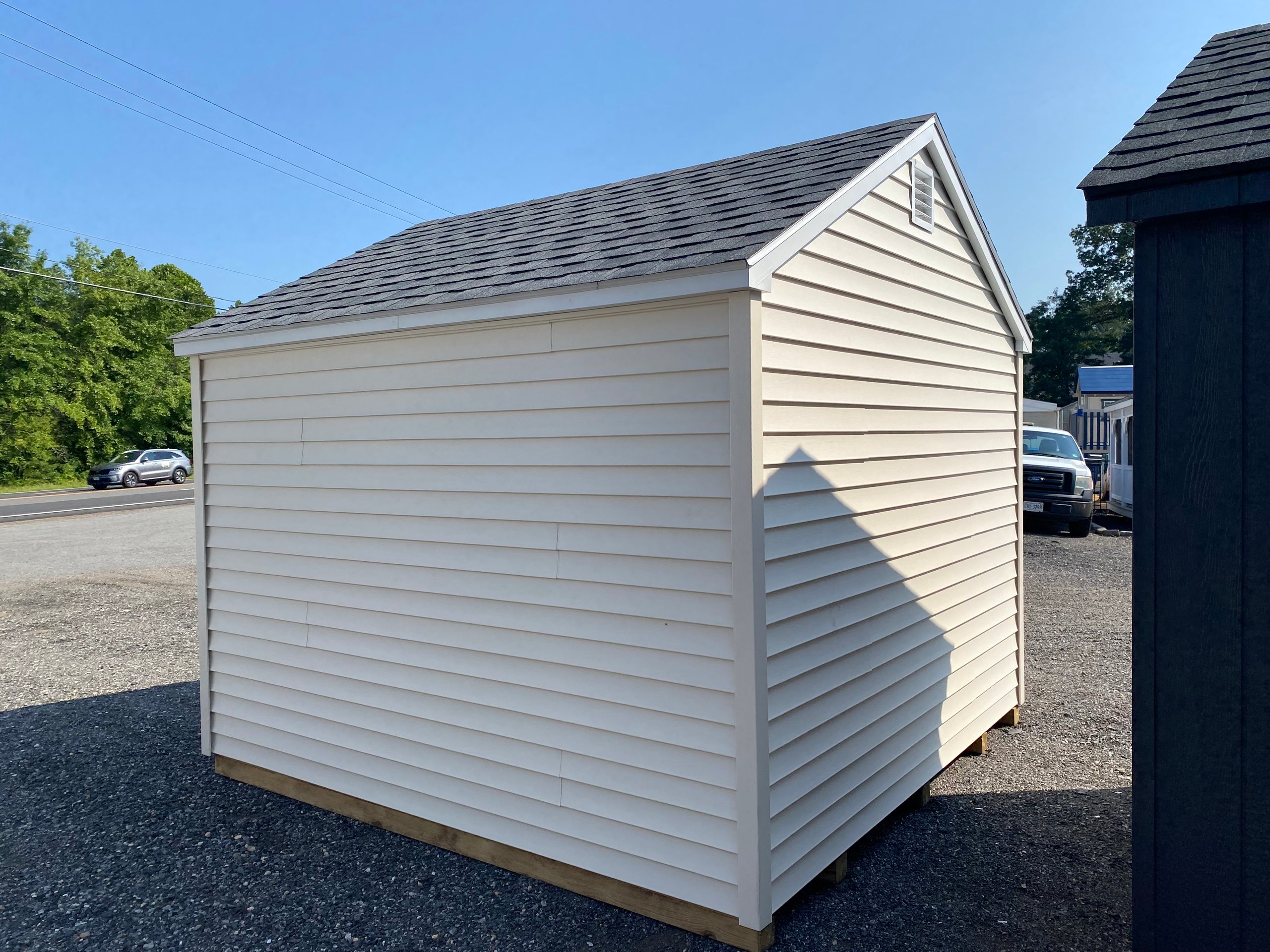 Built with Amish craftsmanship, this 10×10 A-Frame storage shed offers durable, low-maintenance vinyl siding in Pearl with clean white trim. The Virginia Slate architectural shingles and LP Tech Shield roof sheathing help regulate interior temperatures year-round. Inside, you’ll find 2×4 framing throughout, a pressure-treated floor system, and LP Prostruct Flooring for long-term strength. The upgraded 6-foot double doors provide easy access, complemented by a single window for light. Two 16″ interior shelves are included for added storage efficiency. Ideal for homeowners seeking compact, quality-built storage that blends seamlessly with the backyard.