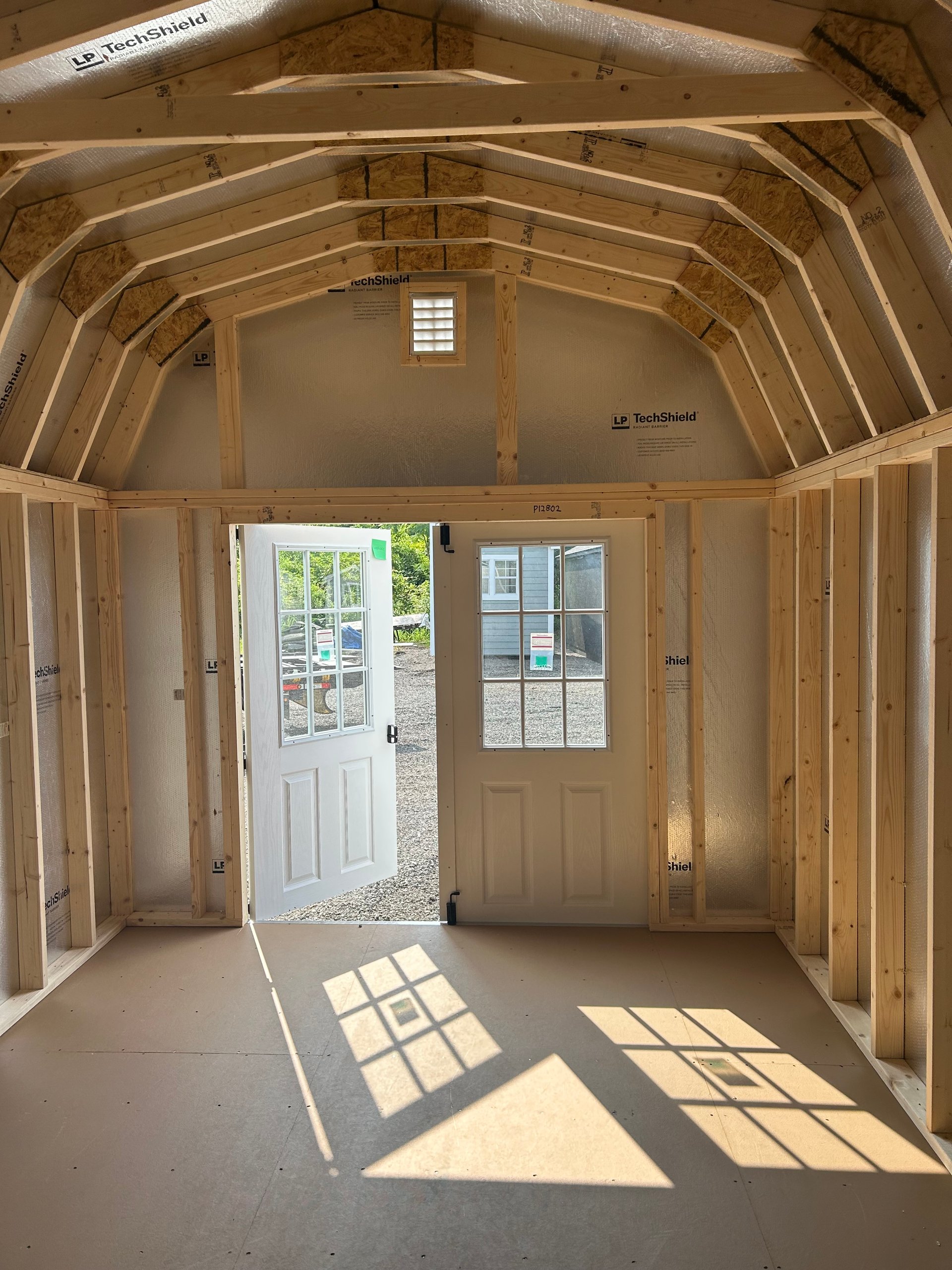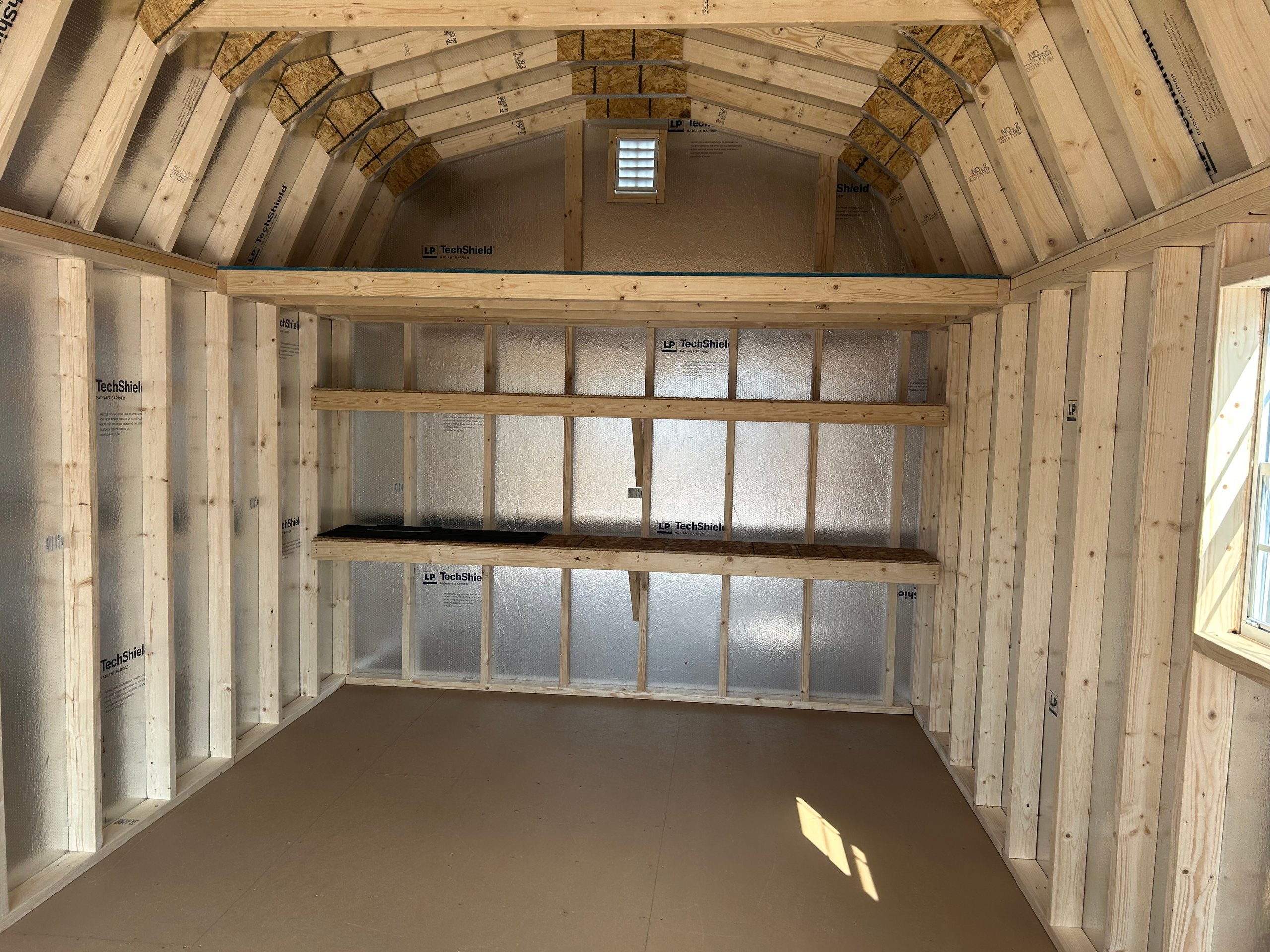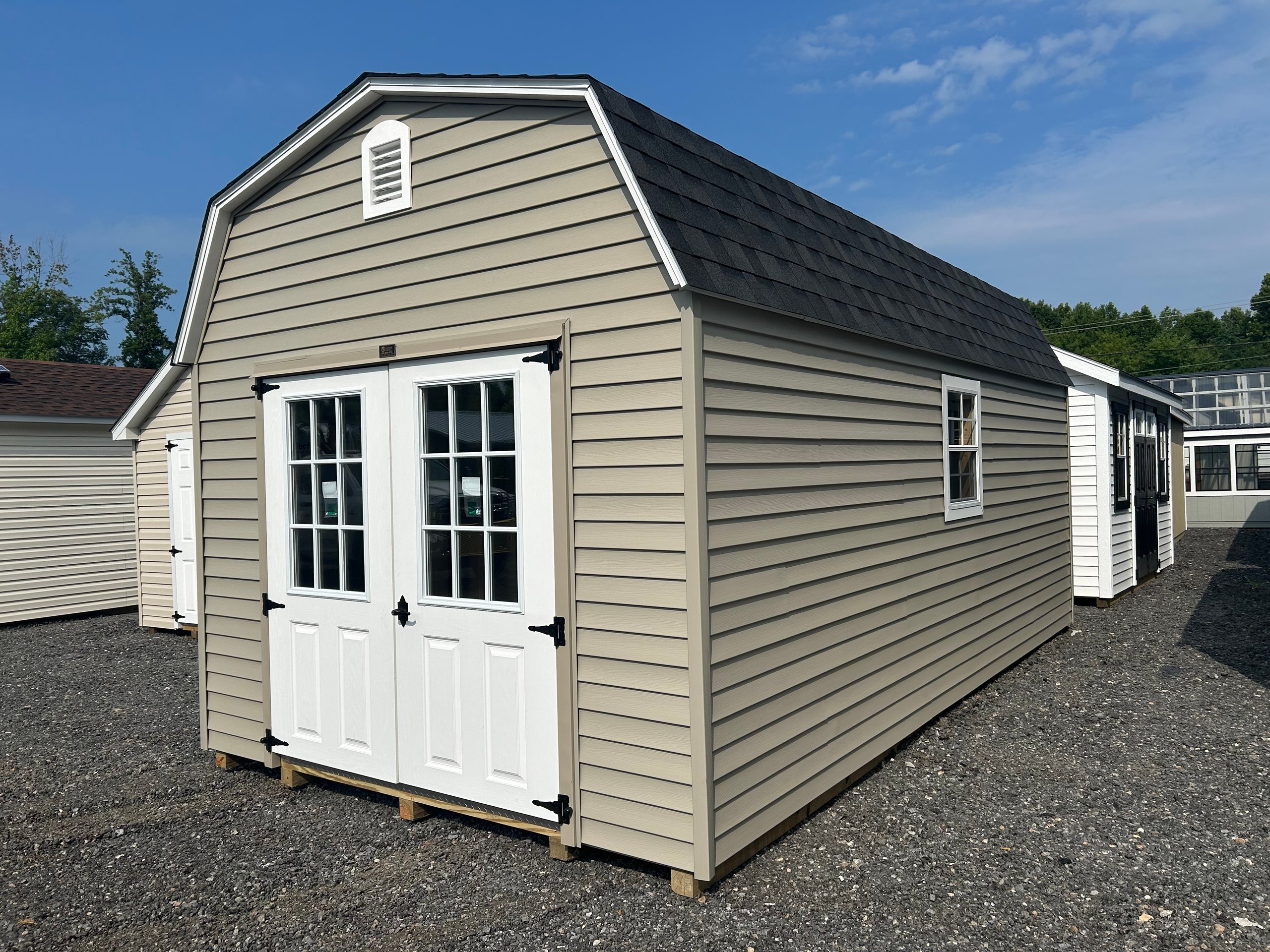 Maximize your storage space in style with this 10×20 Dutch Barn, handcrafted by Amish builders for superior quality and durability. Featuring clay vinyl siding, matching trim, and a black dimensional shingle roof, this shed blends seamlessly with any property. Built with 2×4 framing 16″ on center, LP Prostruct flooring, and a Tech Shield roof, it’s made to last. Enjoy upgraded features like a 9-lite fiberglass door, garden vents, two windows, two 16″ shelves, and a 4′ loft—perfect for organizing tools, seasonal décor, and more. Smart, stylish, and built to endure—this is storage done right.