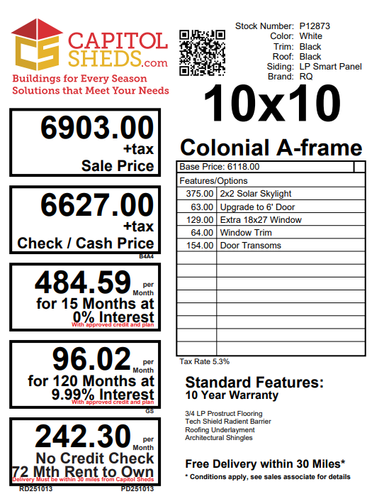 Style Name: Colonial A-frame