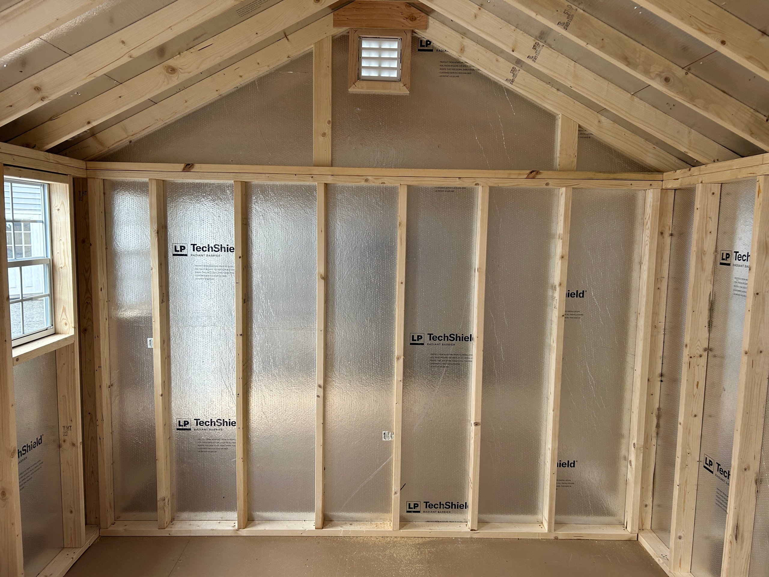 Wall Framing: 2×4 studs 16 inches on center