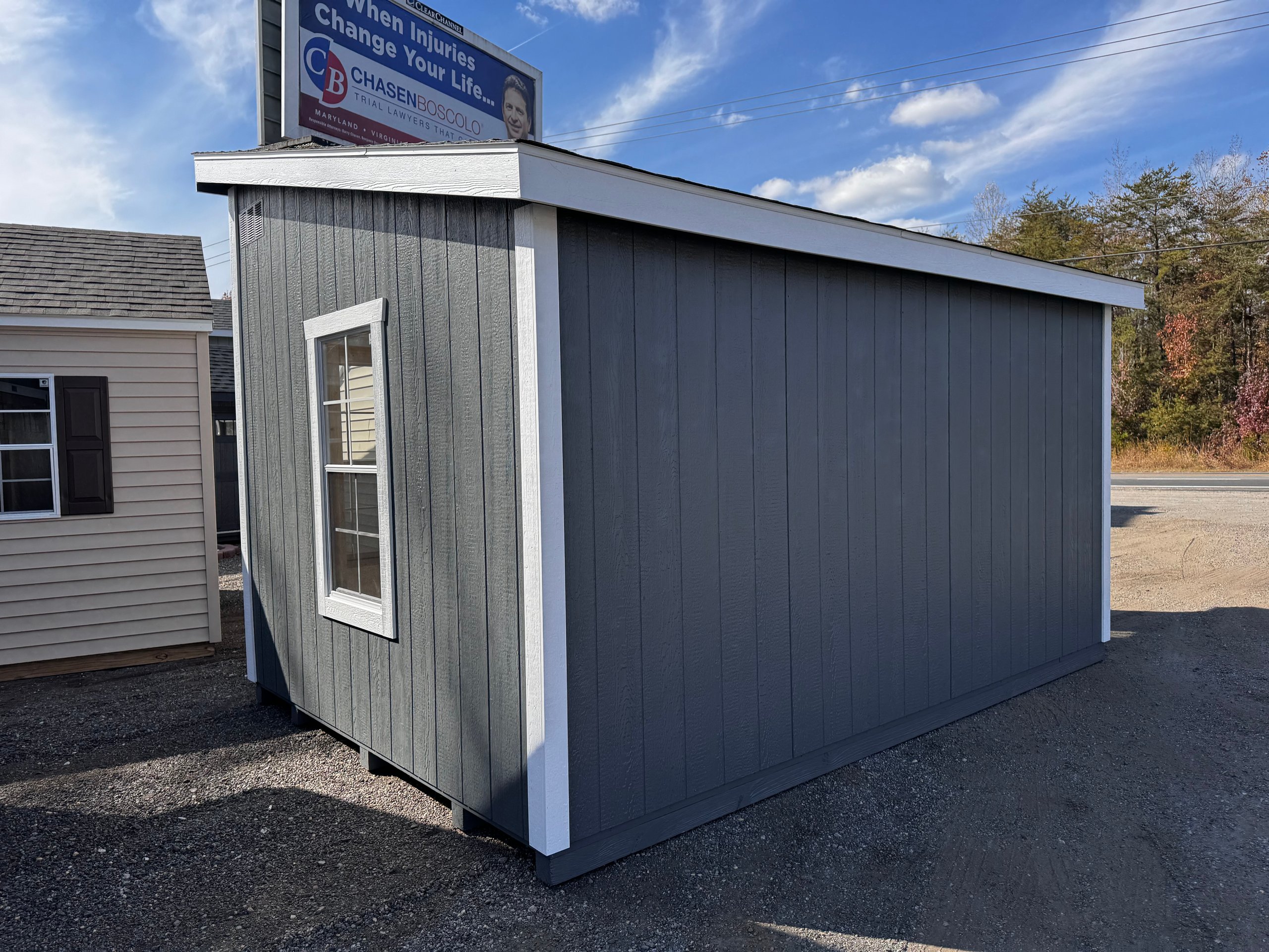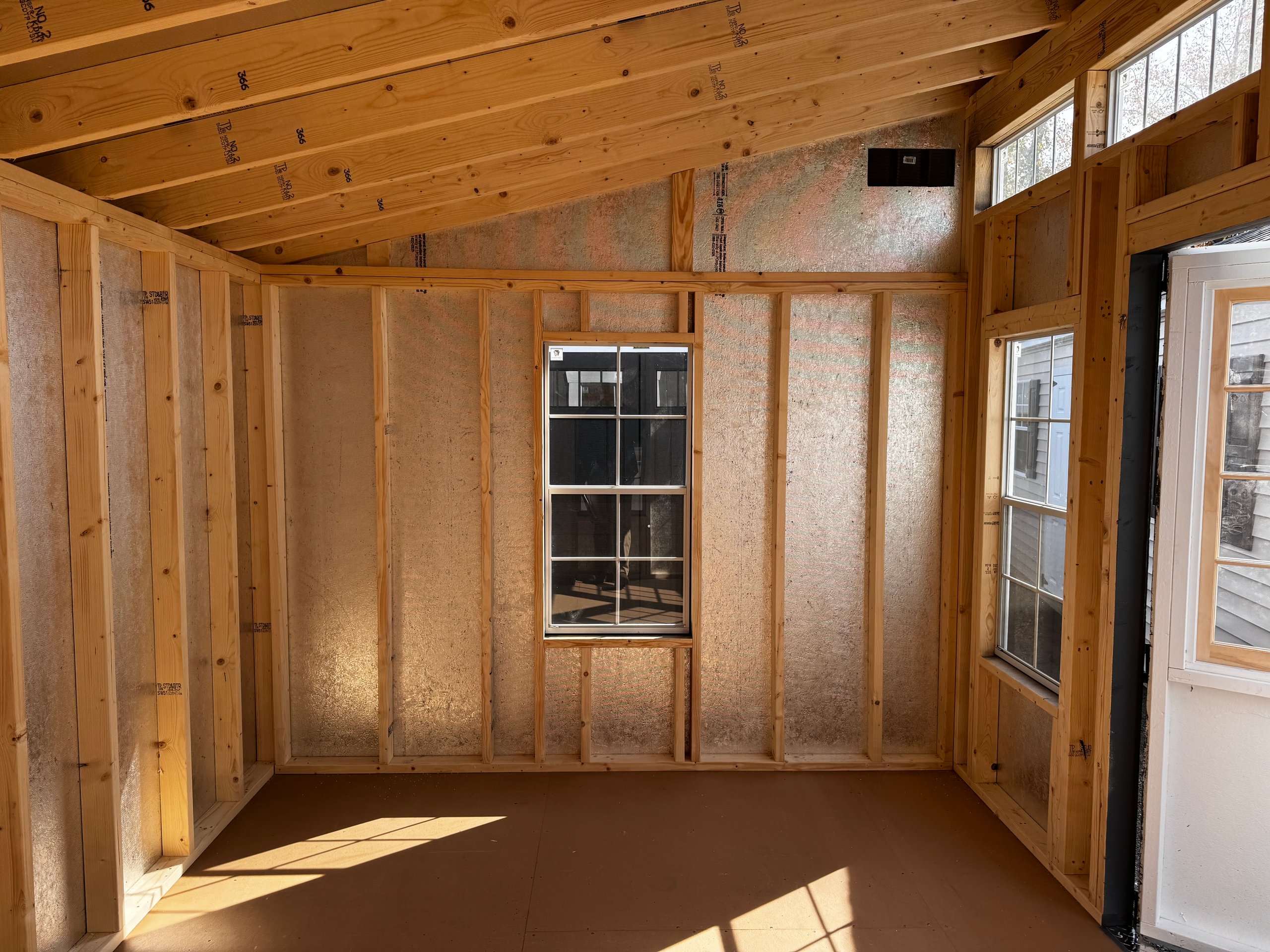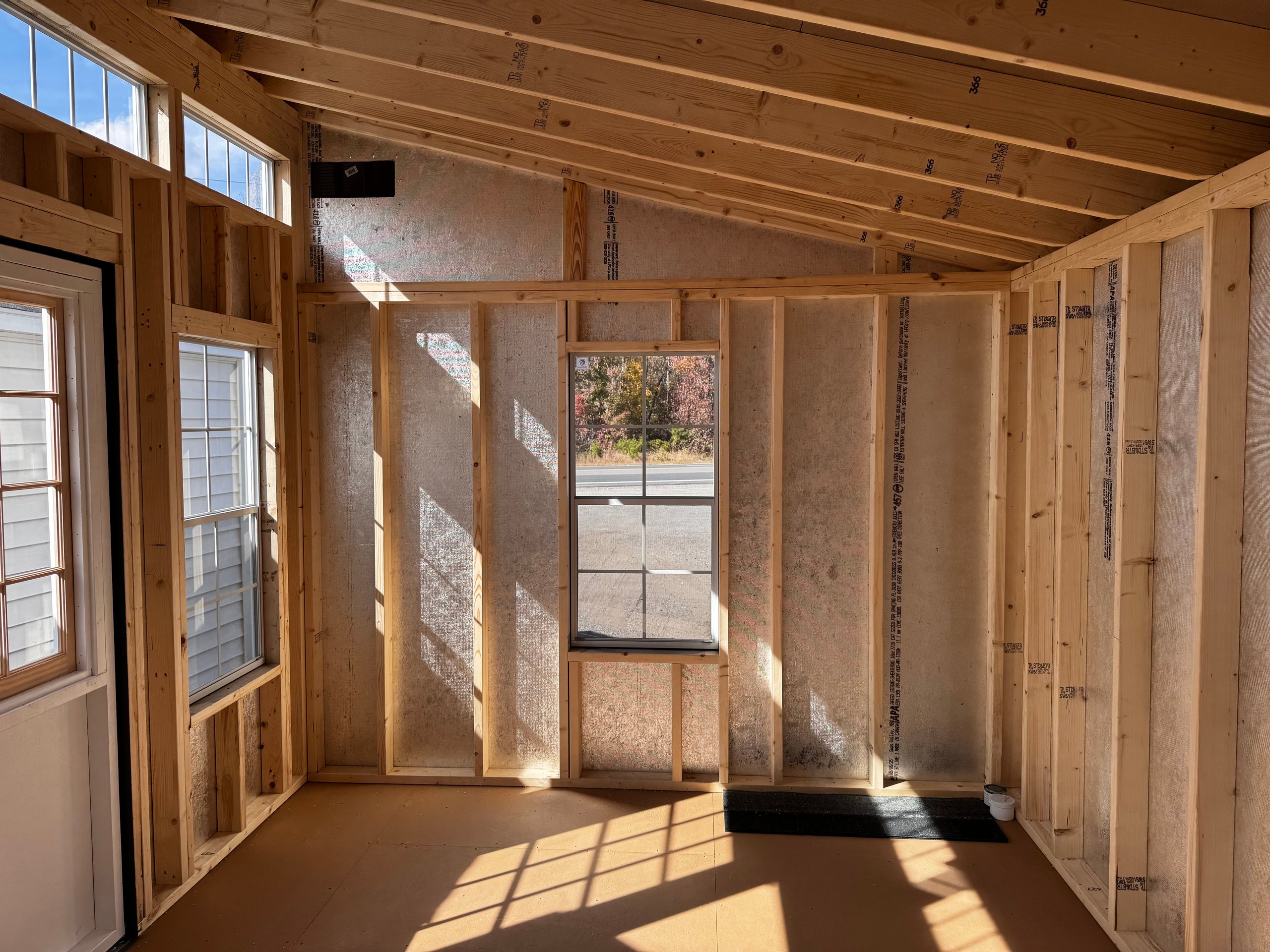 This 10×14 Colonial Studio offers abundant natural light and elegant detailing. Featuring Dark Gray LP Smart Panel Siding with White trim and a Black roof, the structure includes multiple window enhancements—upgraded and additional 24×48 windows, five transoms, and 28×41 wood sash upgrades. Window trim and a 6′ door upgrade complete the professional aesthetic. Built with LP Prostruct Flooring, TechShield Radiant Barrier, and Architectural Shingles, this studio combines enduring strength with refined design. With nine total windows and versatile interior proportions, it’s ideal for a bright creative workspace or polished backyard addition.