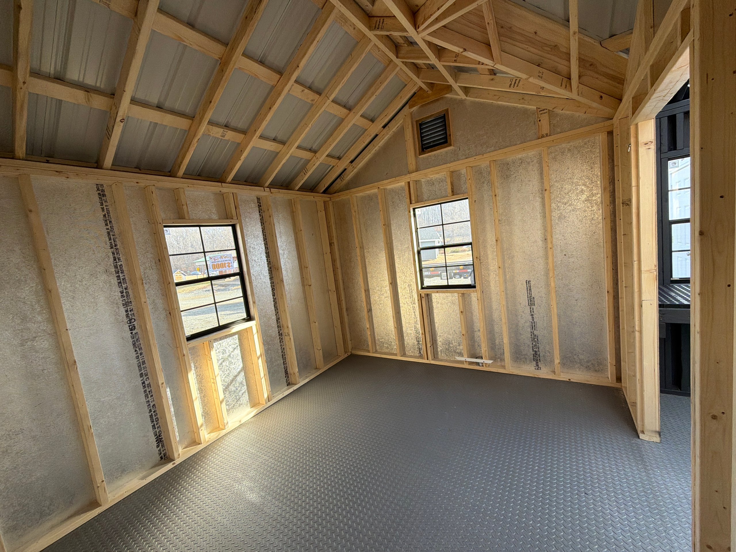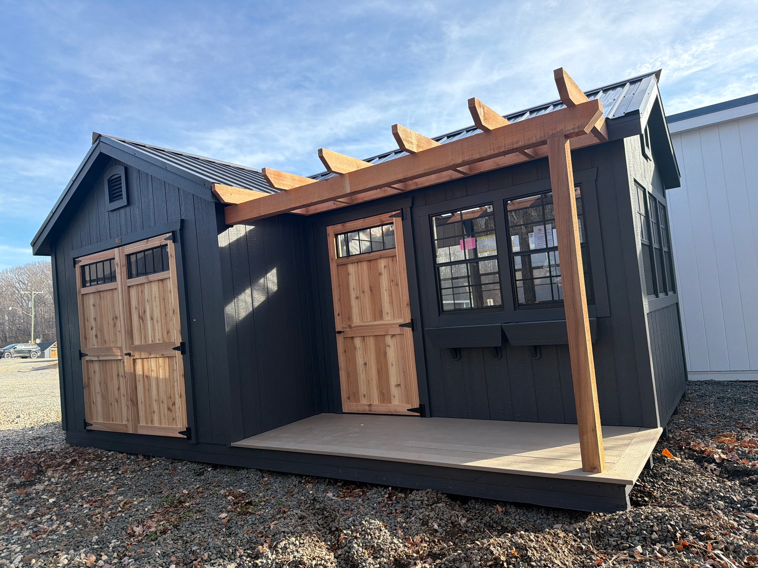 The 12×20 Greenhouse Combo blends functional storage with light-filled greenhouse space. Finished in Mopboard LP Smart Panel siding with matching trim and a black/clear roof, it offers durability with modern appeal. Eleven windows flood the interior with natural light, ideal for plants, projects, or workspace use. Upgraded cedar doors—including 6′ double doors and a 3′ single door—add warmth and craftsmanship, each enhanced with transom windows for added brightness. Inside, 8′ greenhouse shelves provide organized growing or storage space. Built on a sturdy 3/4″ LP ProStruct floor, this combo delivers flexibility, beauty, and everyday practicality