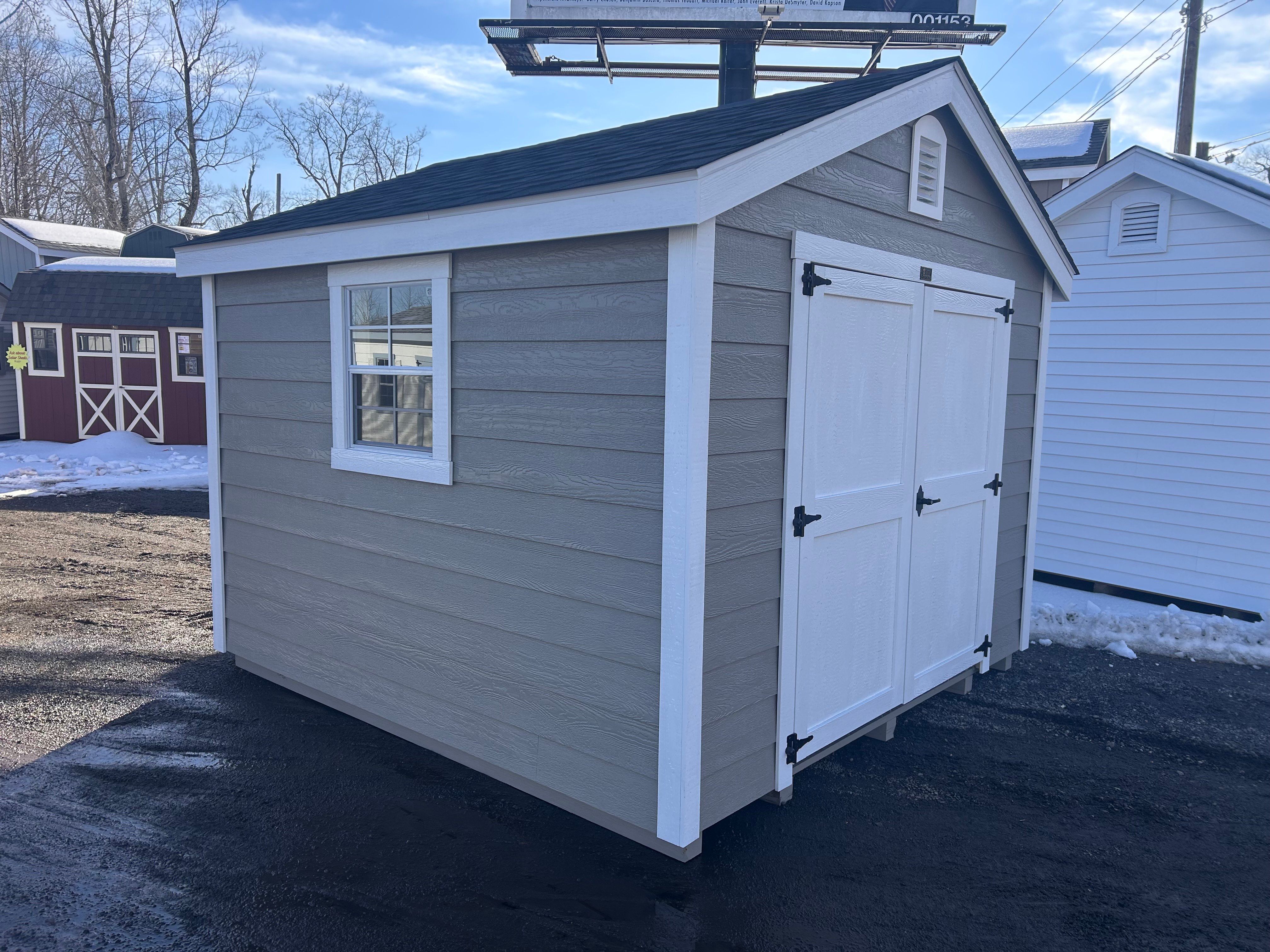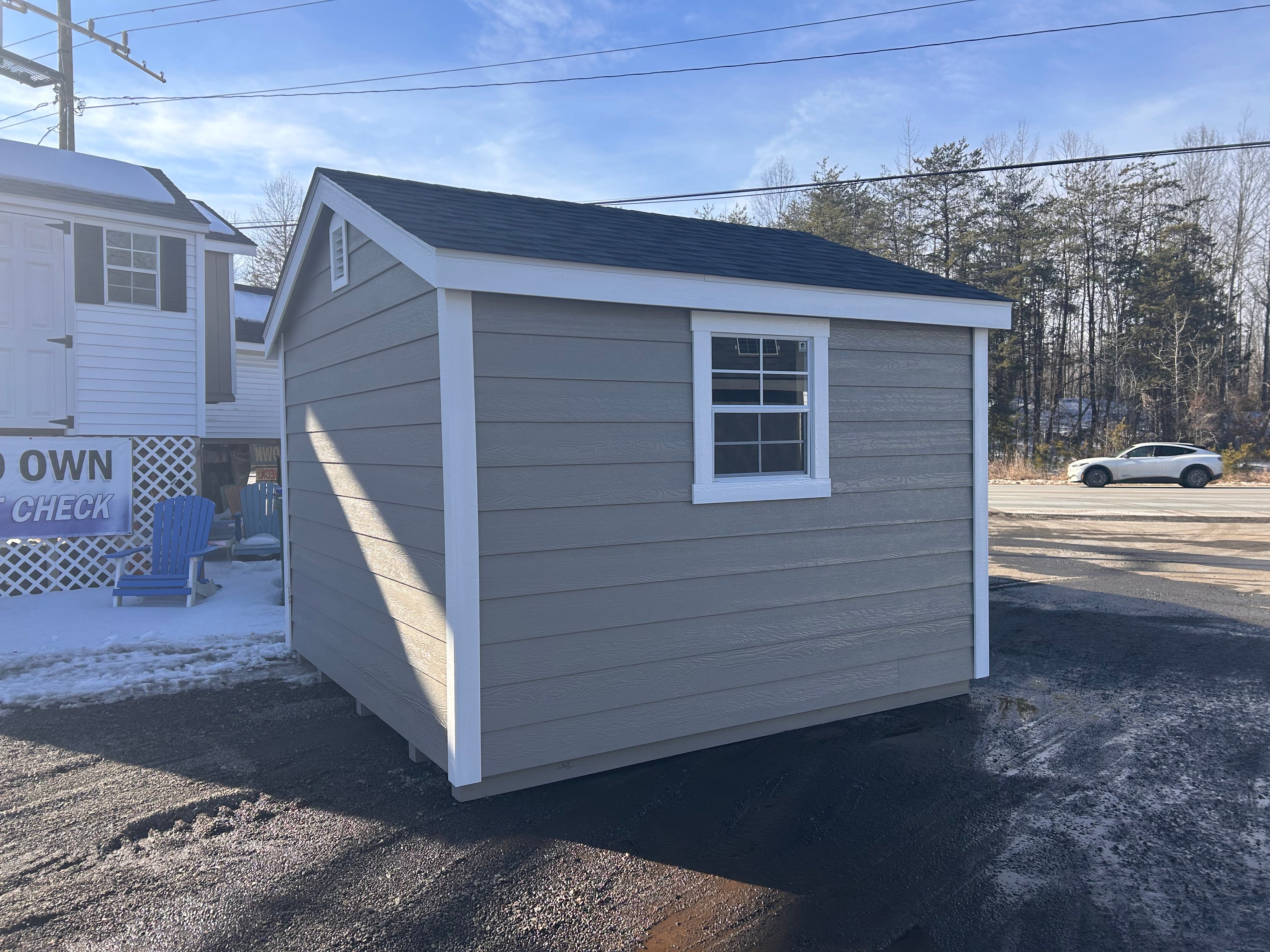 This 10×10 Amish-built A-Frame shed is strong, simple, and built to last. Finished in a warm clay color with crisp white trim and a classic black roof, it adds timeless style to any backyard. Upgraded 24″x27″ windows bring in natural light, while a garden vent helps keep fresh air flowing. The upgraded 6′ door makes it easy to move larger tools and equipment in and out, and two 16″ shelves provide convenient space to keep your items organized.